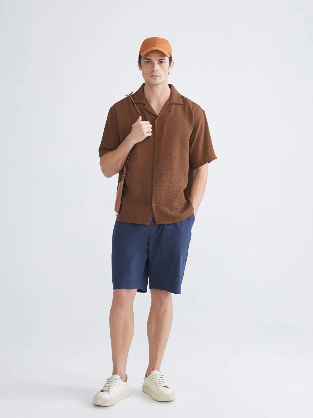 Regular fit kesime sahip erkek gömlek, resort yaka ve kısa kollu olarak tasarlanmıştır.