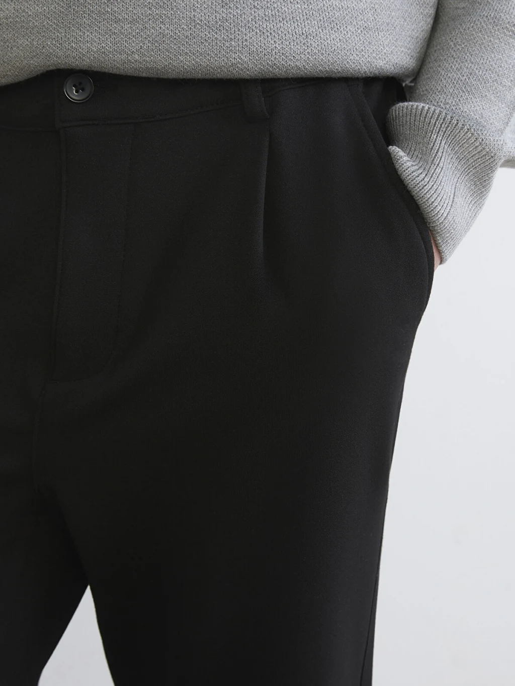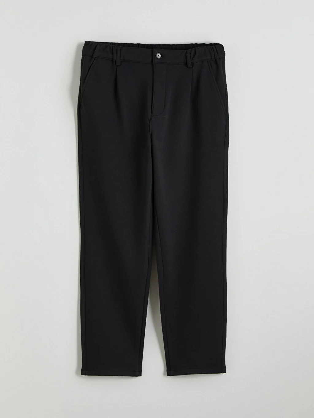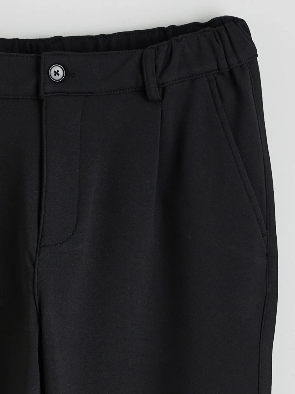 Regular fit erkek pantolon, beli lastikli, düğme kapamalı ve önü pilelidir. Yan cepleri bulunur.