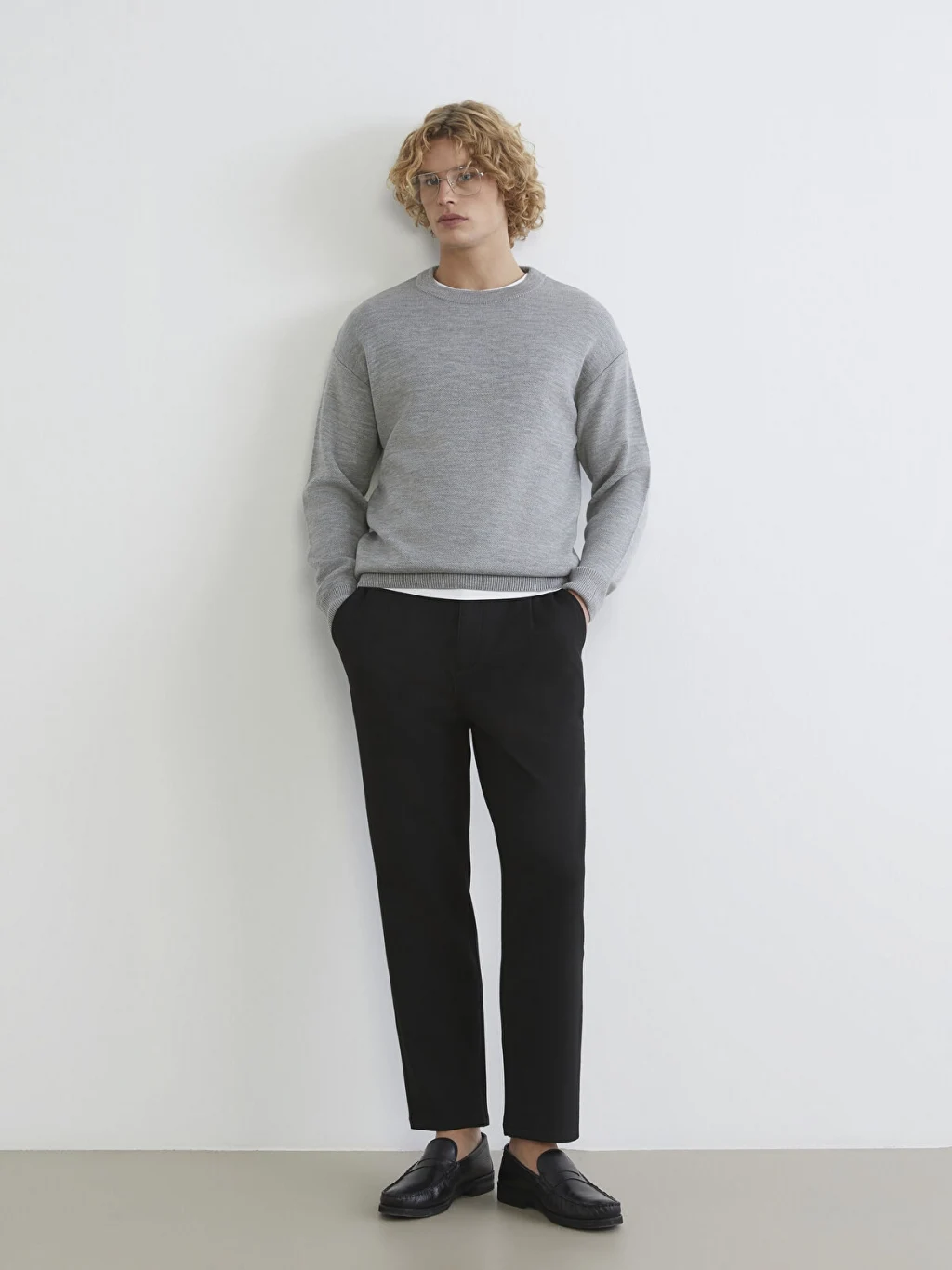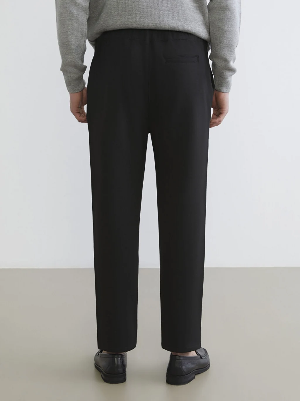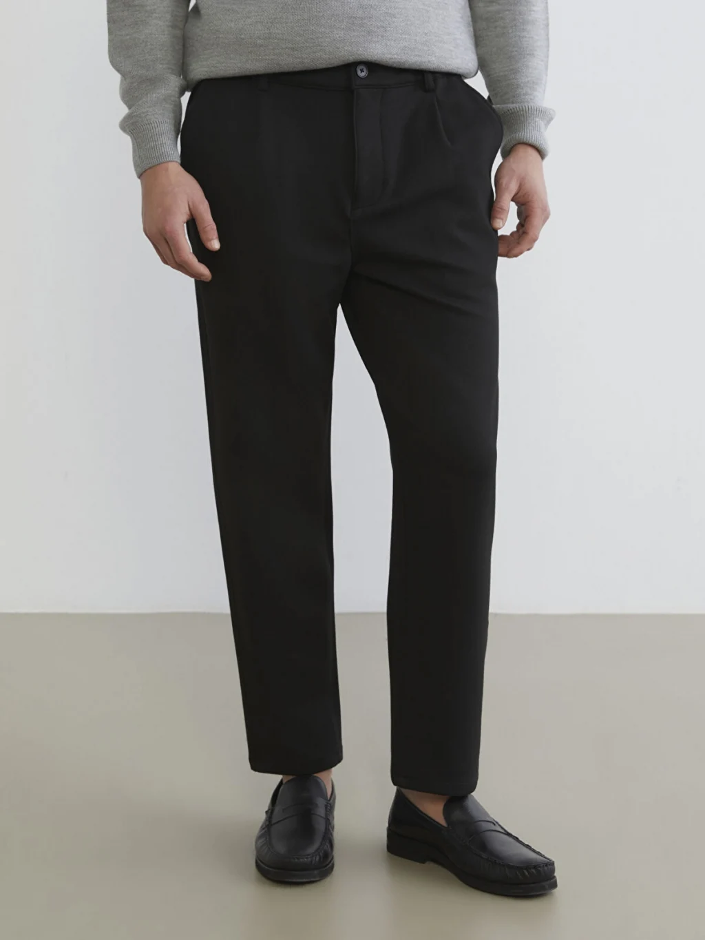 Regular fit erkek pantolon, beli lastikli, düğme kapamalı ve önü pilelidir. Yan cepleri bulunur.