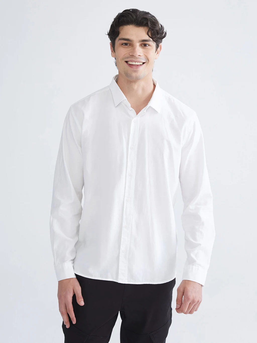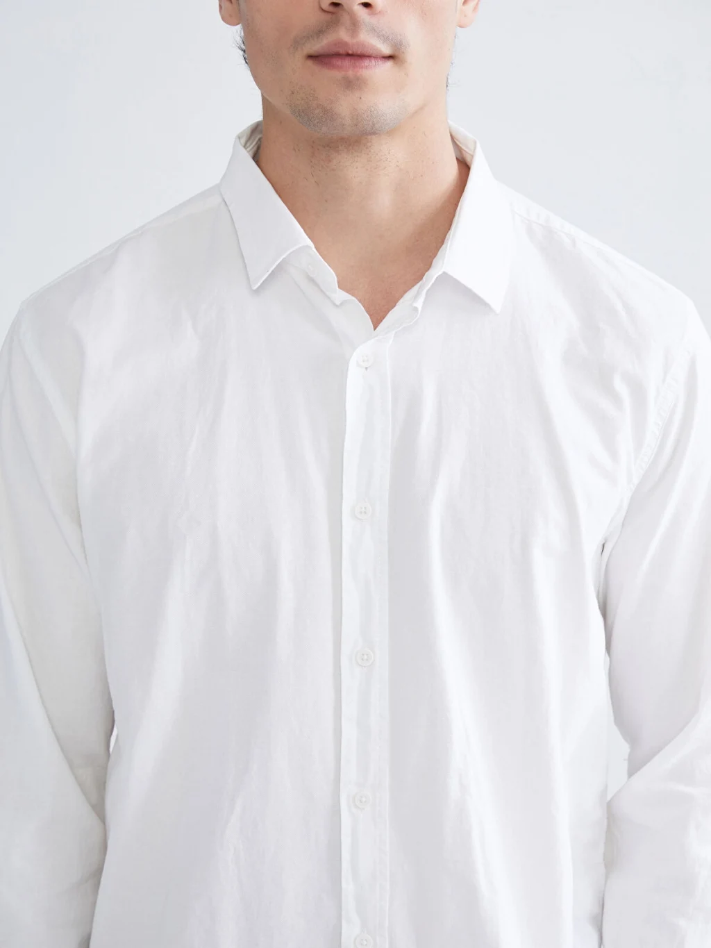 %100 pamuklu gabardin kumaştan üretilen erkek gömlek, gömlek yakalı ve uzun kolludur. Önden düğme kapamalıdır.