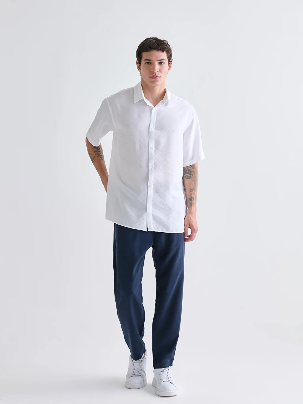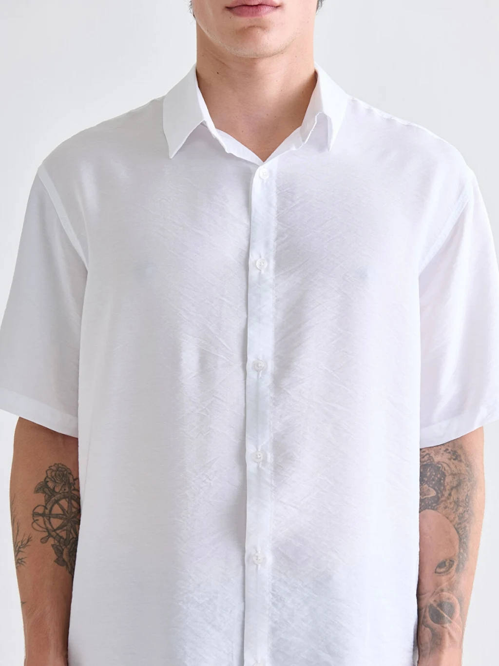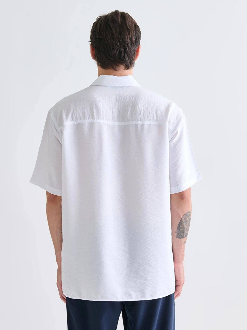 Regular fit kesime sahip, kısa kollu erkek gömlek viskon kumaştan üretilmiştir.