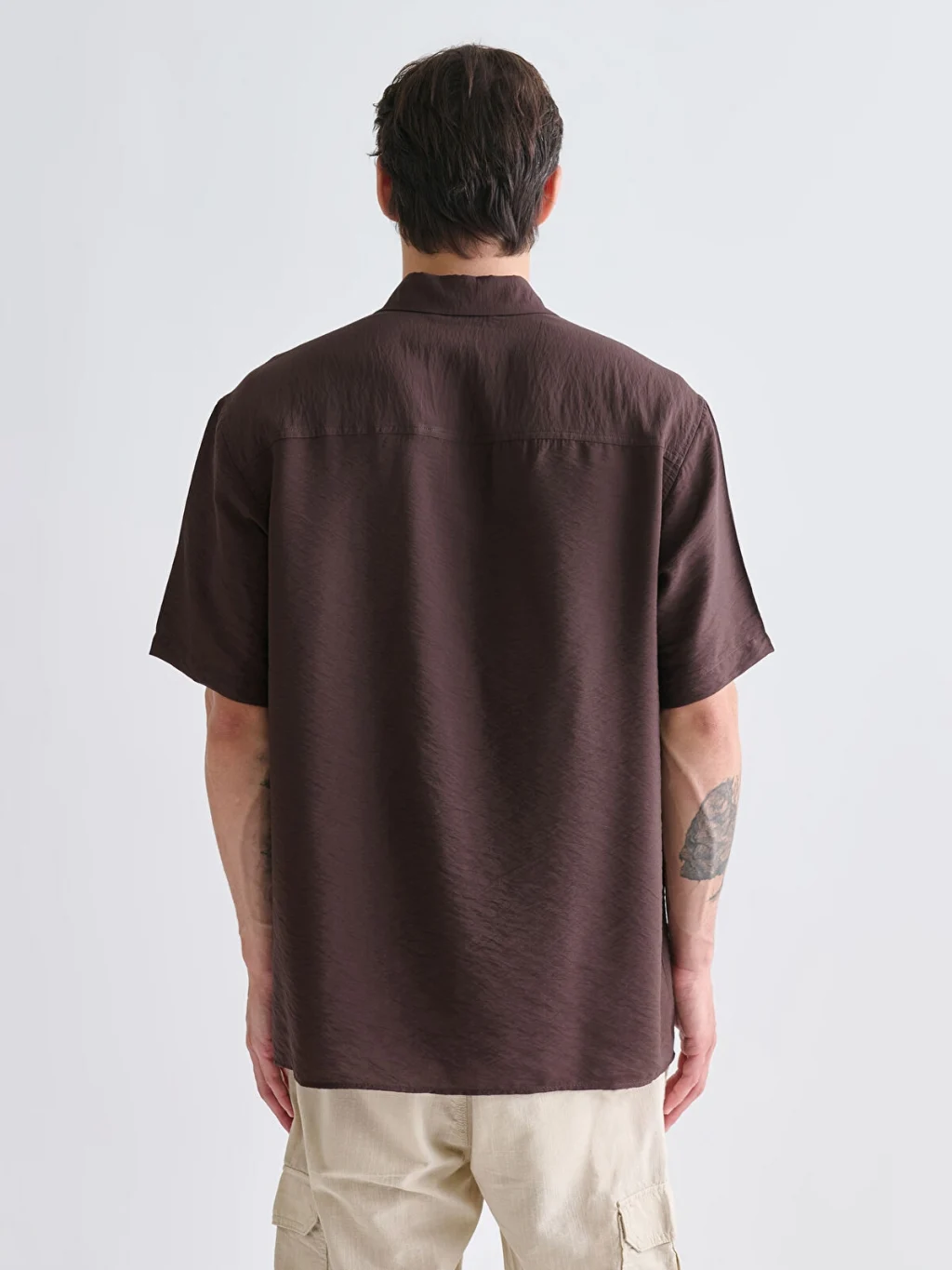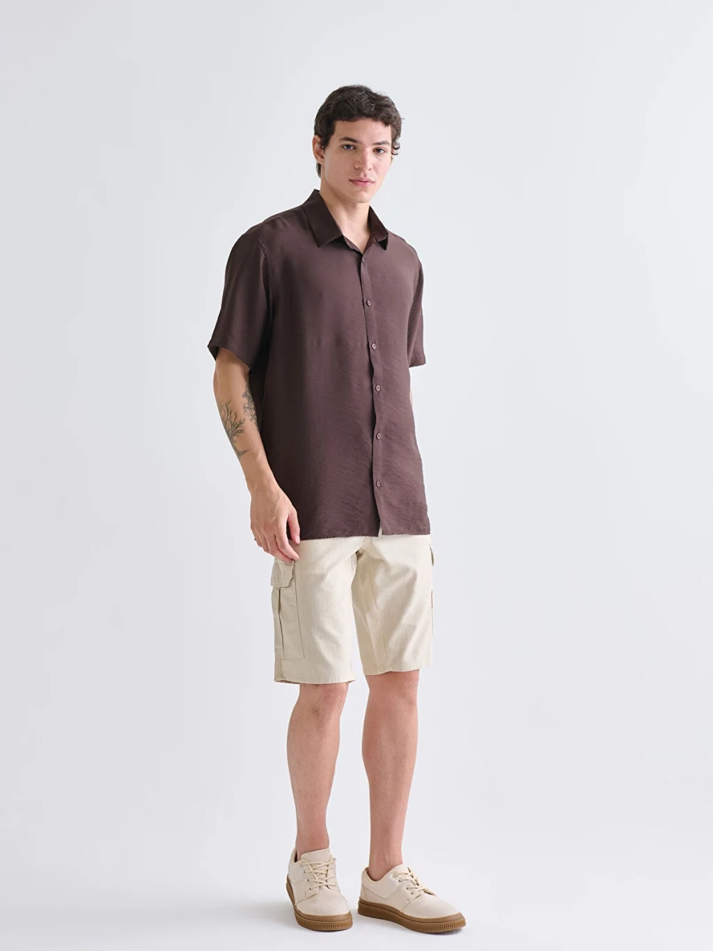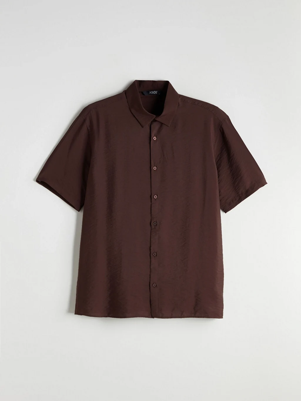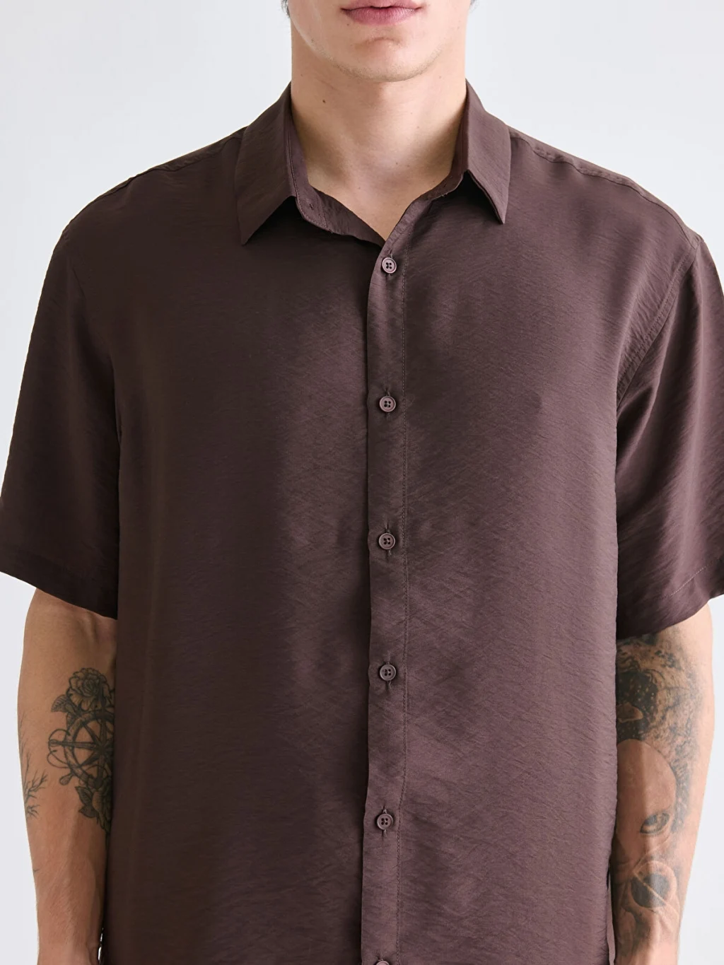 Regular fit kesime sahip, kısa kollu erkek gömlek viskon kumaştan üretilmiştir.