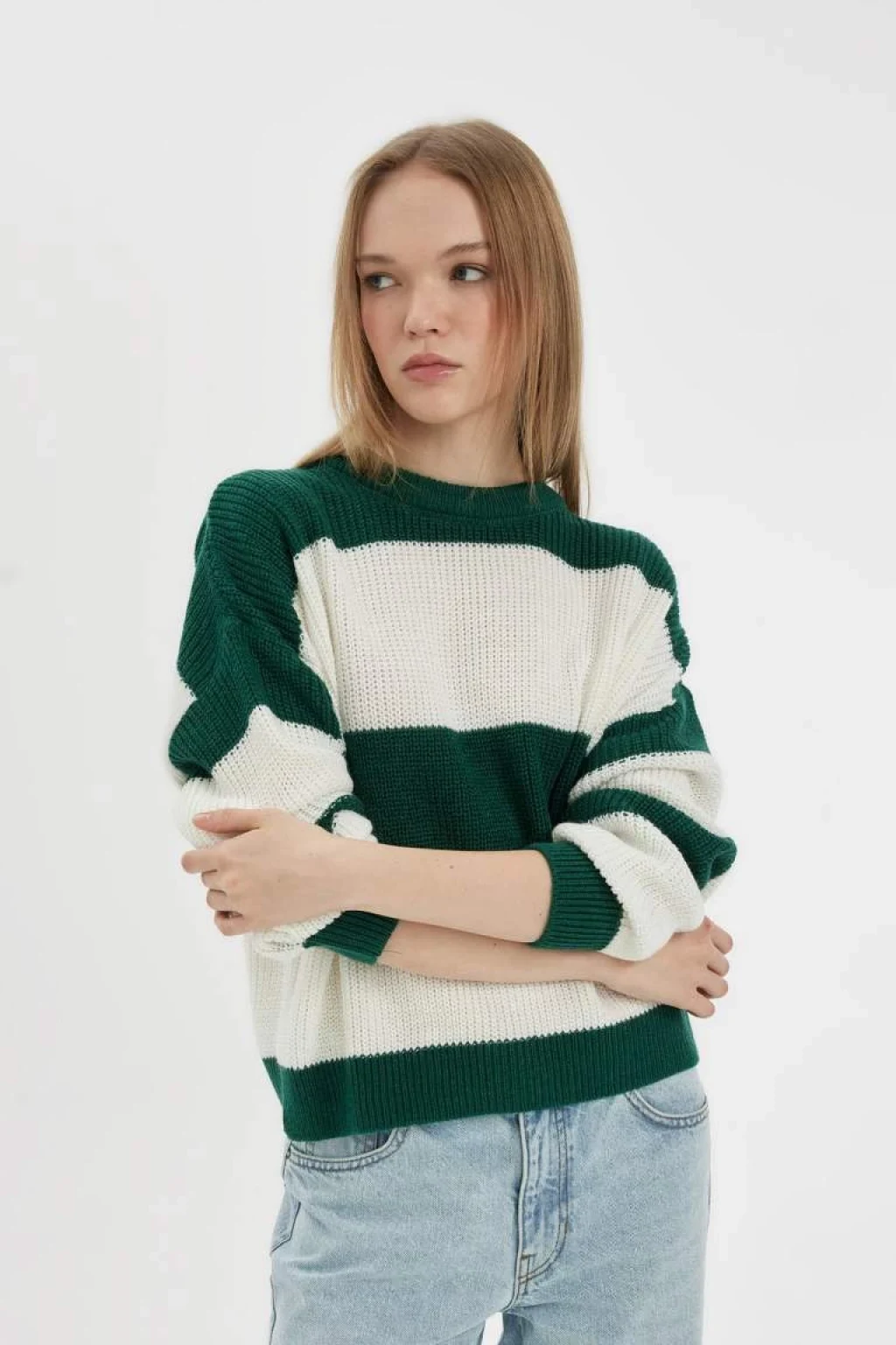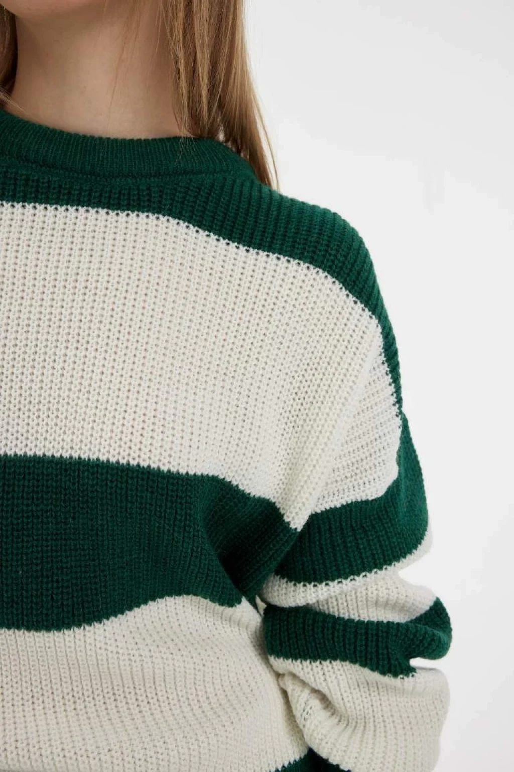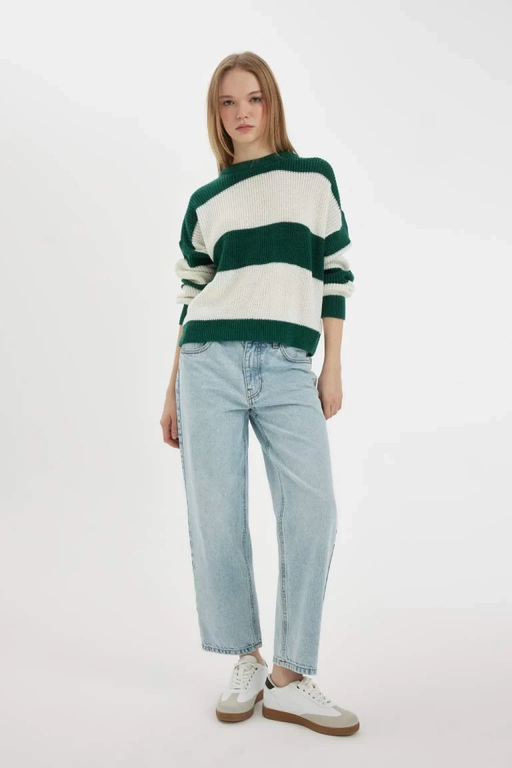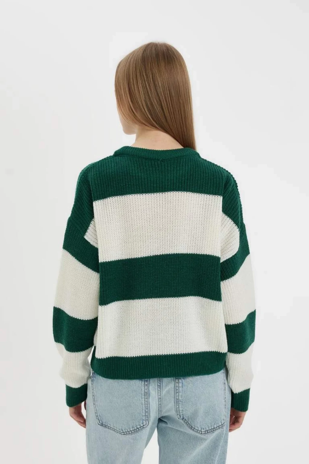 Defacto C9618AXGN826 Yeşil Standart Fit Bisiklet Yaka Triko Kazak