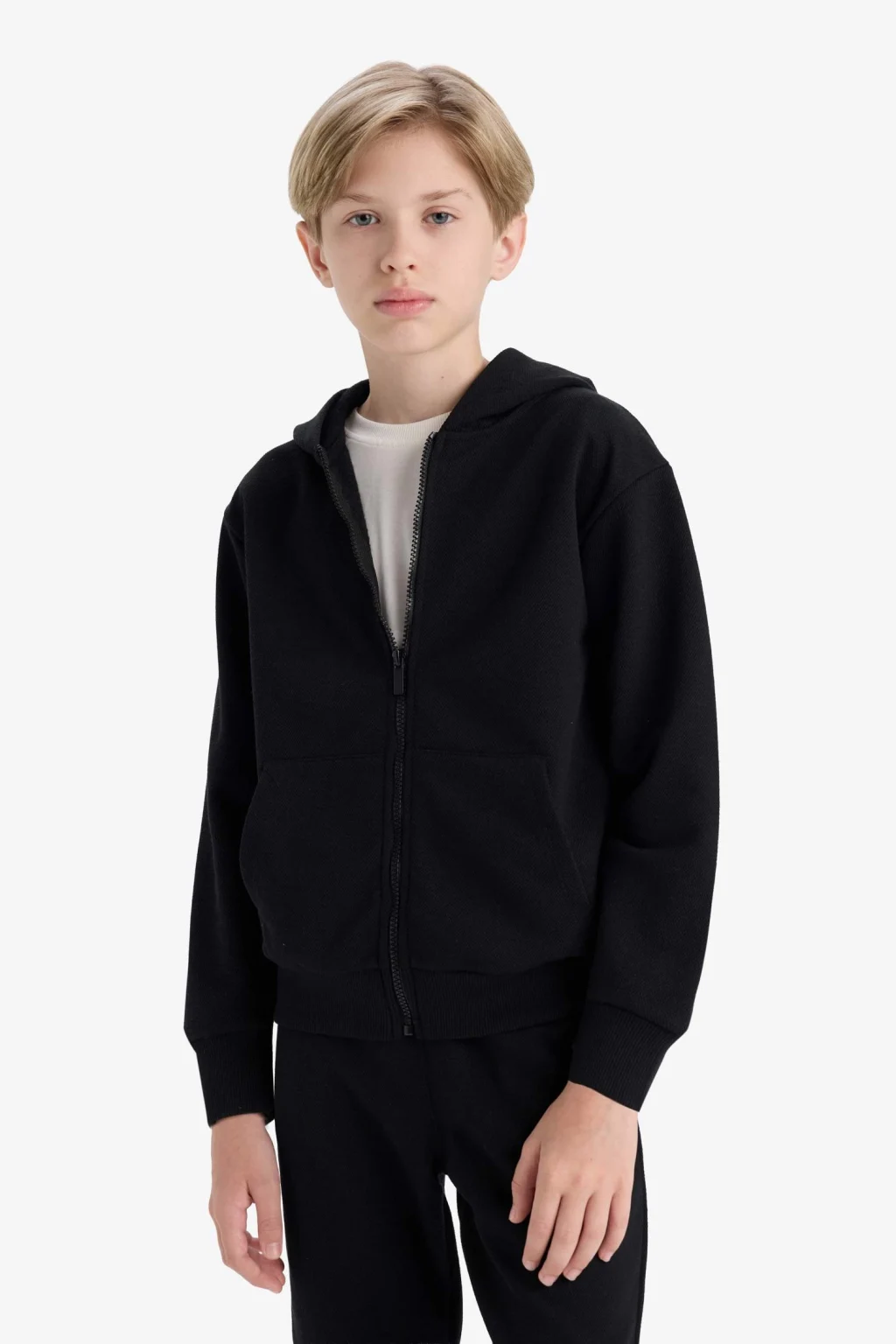 Yumuşak ve sıcak tutan kumaşıyla erkek çocuk kapüşonlu fermuarlı sweatshirt, serin havalar için ideal bir tercih. Pratik fermuar detayı ve rahat kesimi sayesinde kolay giyilip çıkarılır.