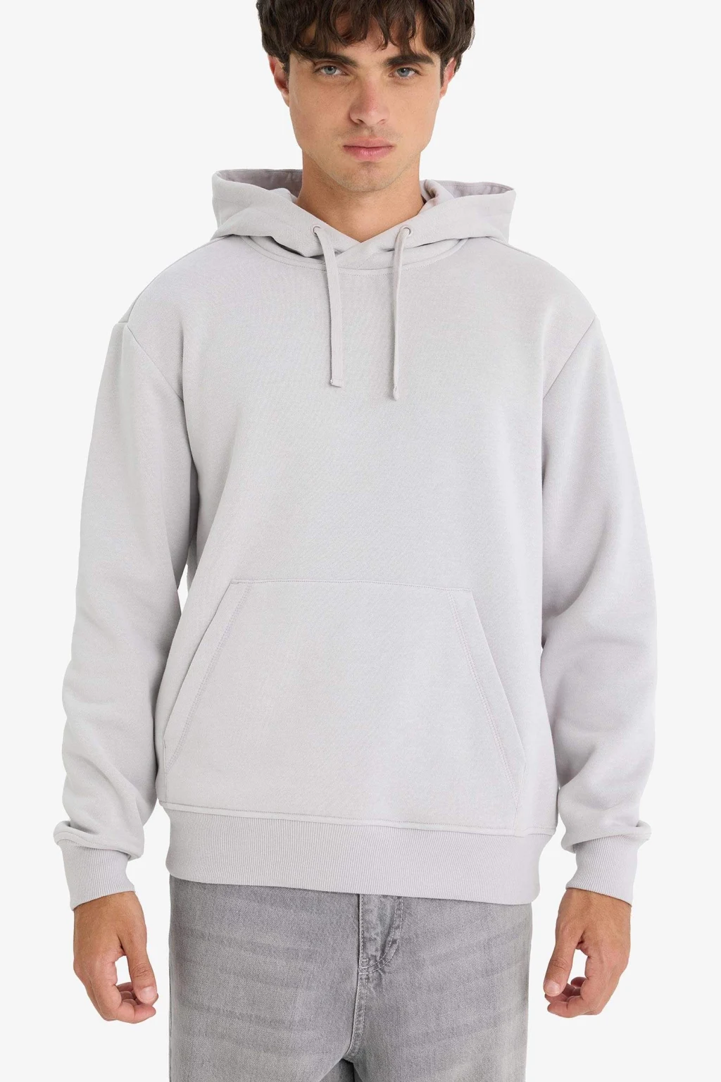 Defacto X8283 Gri Regular Fit Kapüşonlu Kanguru Cepli İçi Yumuşak Tüylü Basic Düz Sweatshirt