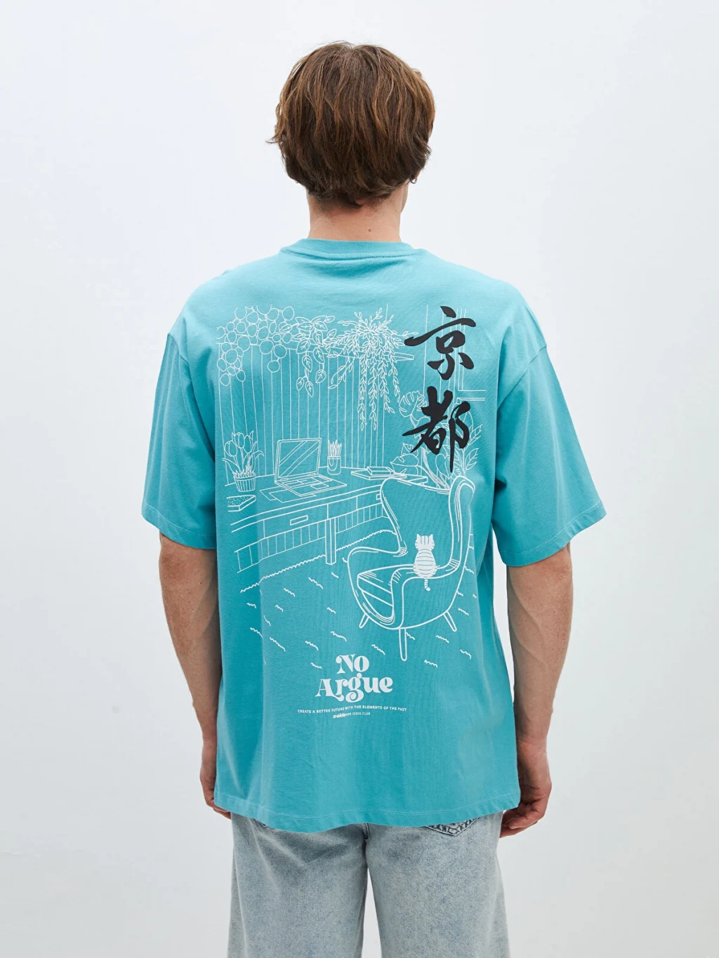 %100 pamuklu penye kumaşı sayesinde yaz aylarında rahat bir kullanım sağlar. Baskılı tasarımıyla da günlük kombinlerinize tarz bir hava katar.