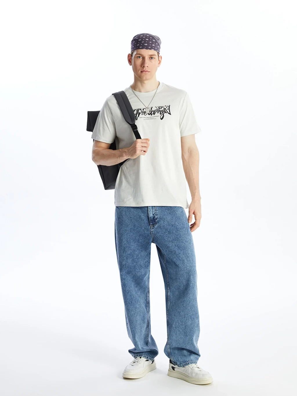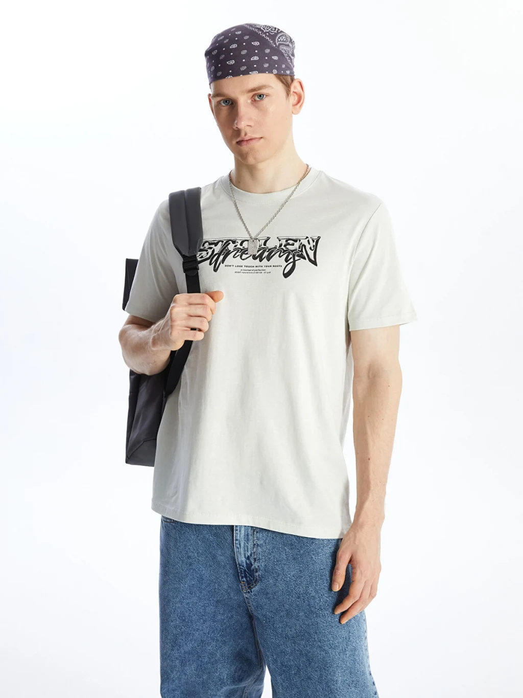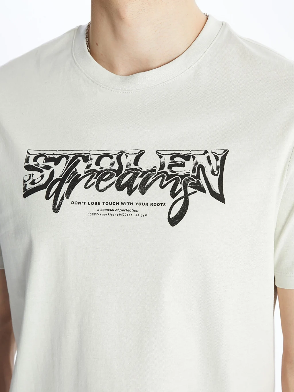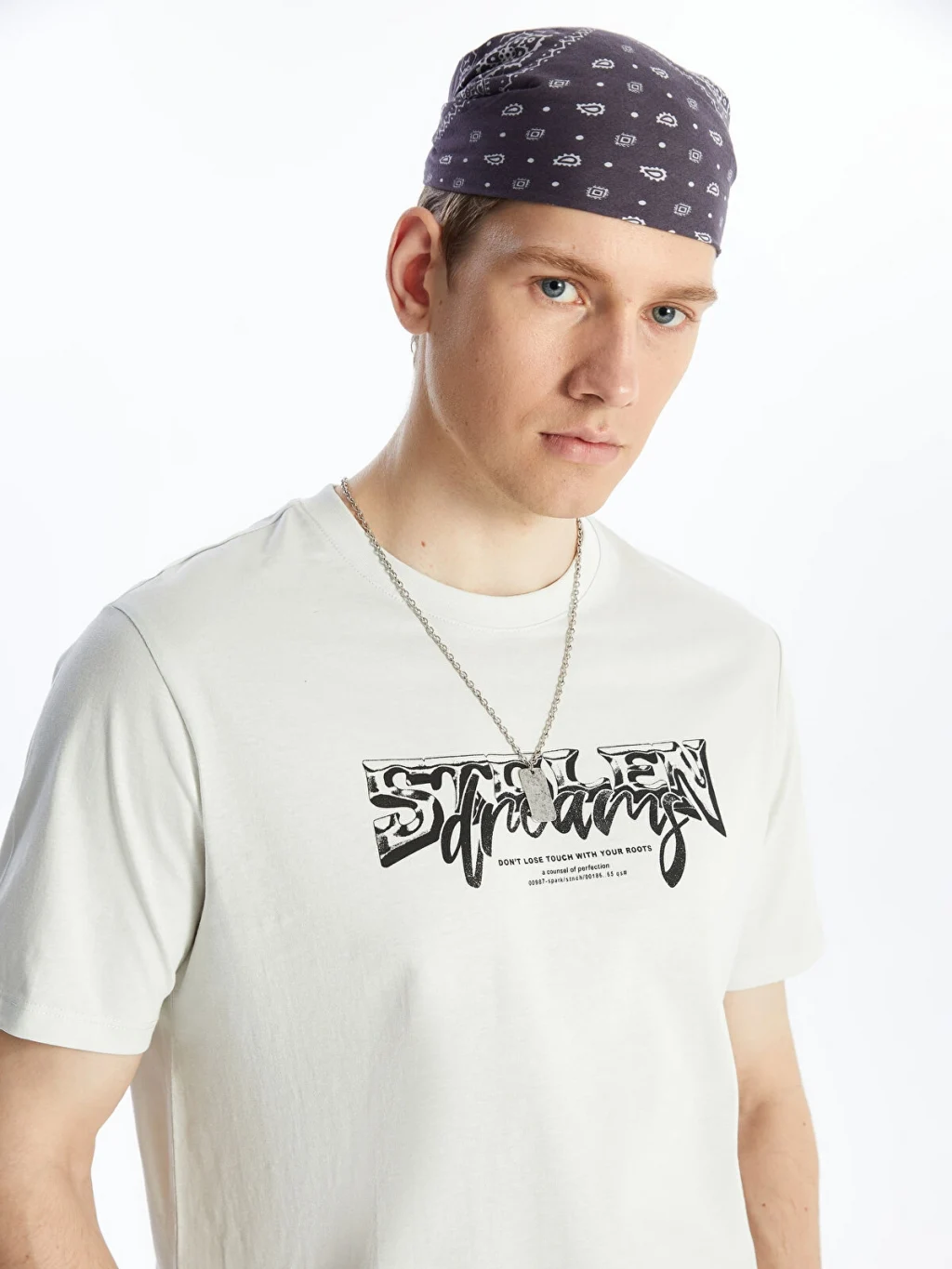 Bisiklet yaka, kısa kollu erkek tişört, %100 pamuklu penye kumaştan üretilmiştir. Ön yüzü baskılı tasarıma sahiptir.
