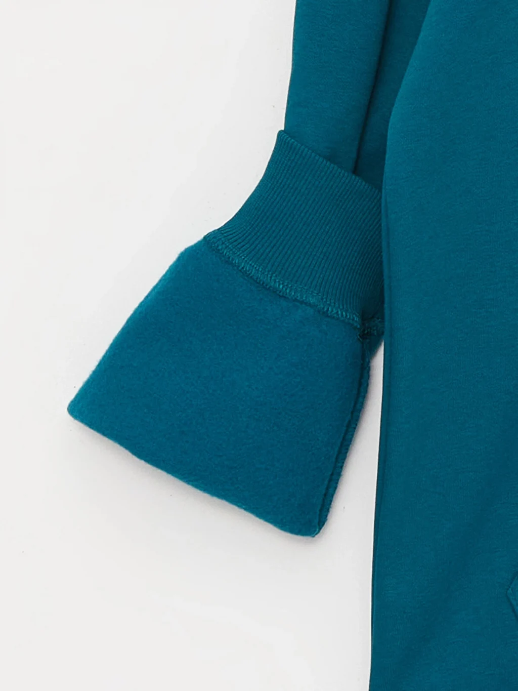 İçi yumuşak tüylü dokusuyla bu sweatshirt sıcak ve rahat bir deneyim sunar. Bilekleri ve alt kısmı ribanalı olarak tasarlanmıştır, böylece sıkıca oturur ve rüzgarın içeri girmesini engeller. Ayrıca kanguru cep detayıyla pratik kullanım sağlar.