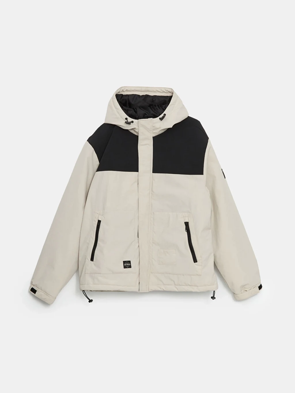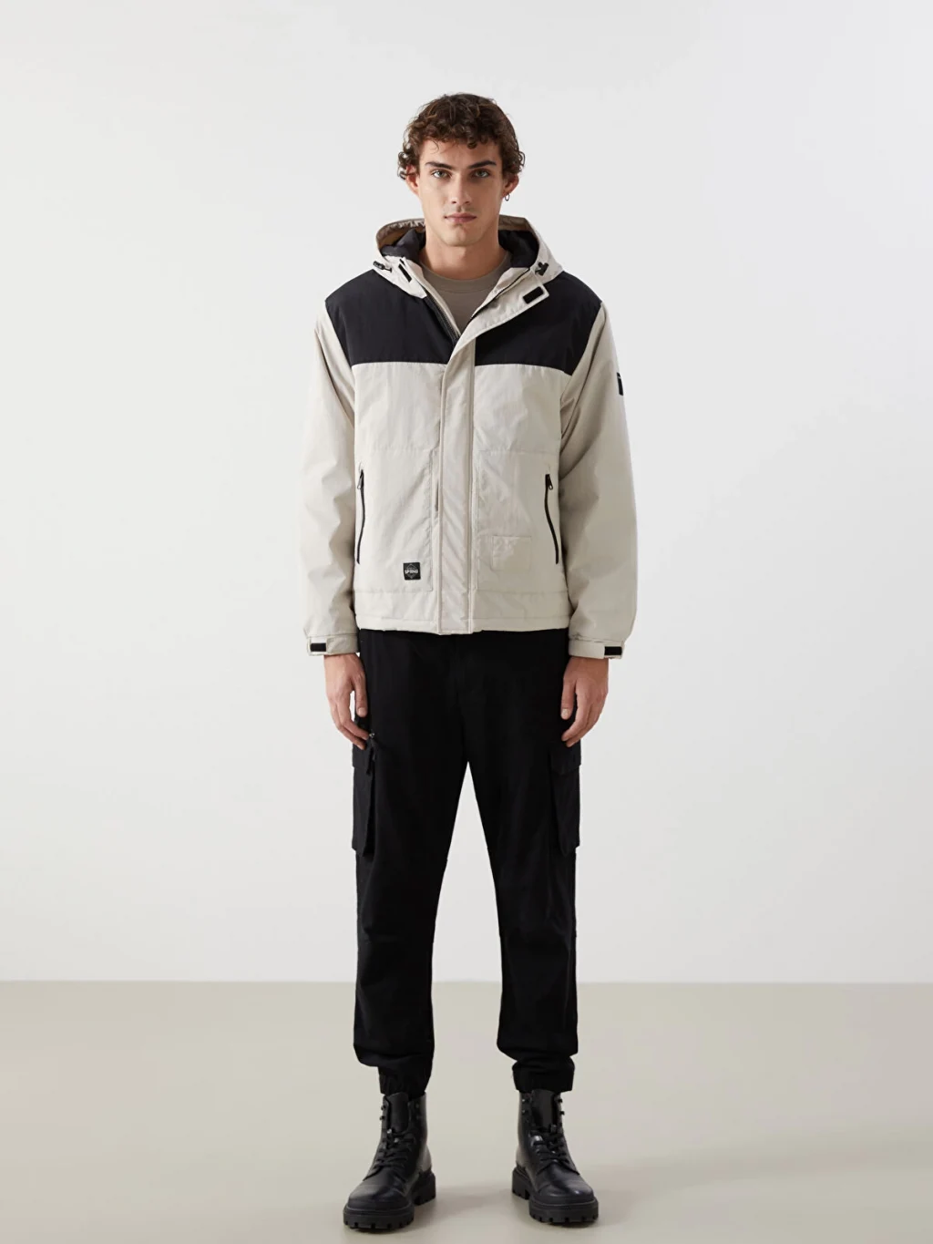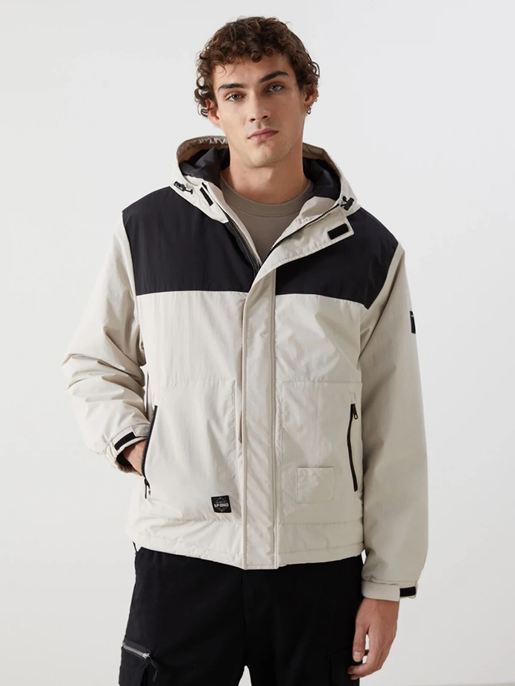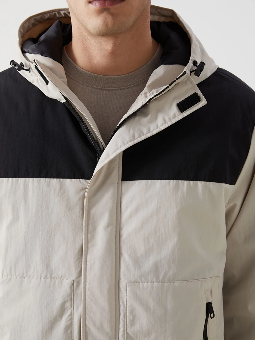 Renk bloğu deseniyle modern bir görünüm sunan rahat kalıp kapüşonlu erkek mont orta kalınlıktaki kumaşıyla serin havalar için ideal. Günlük ve sportif kombinlerinizde şıklık katın.