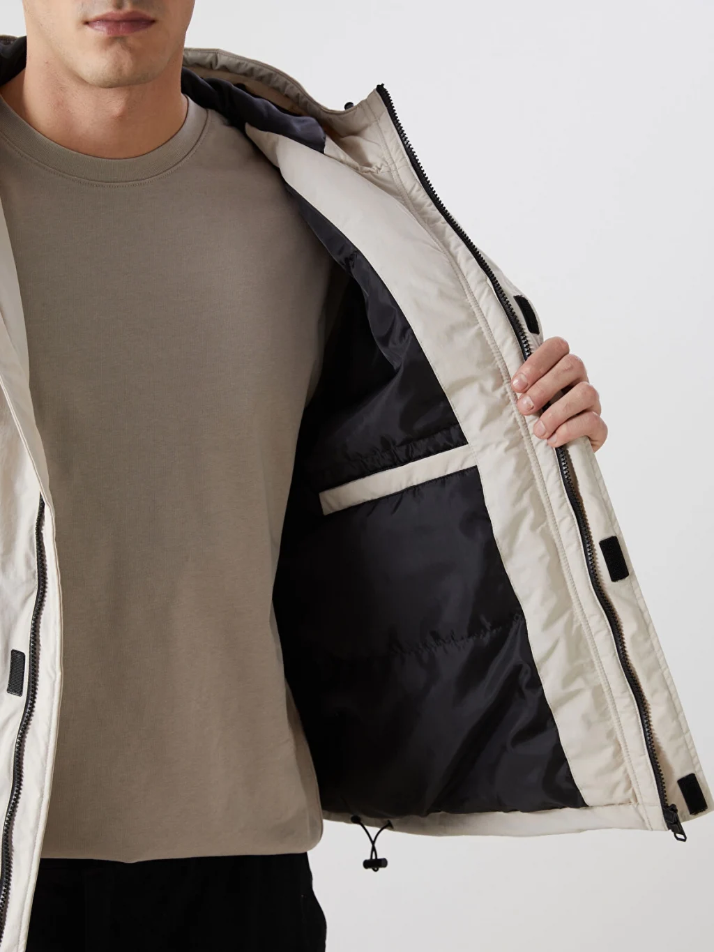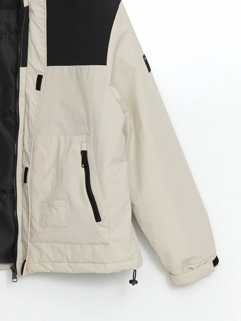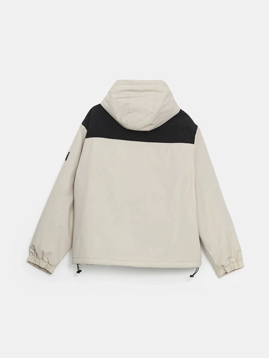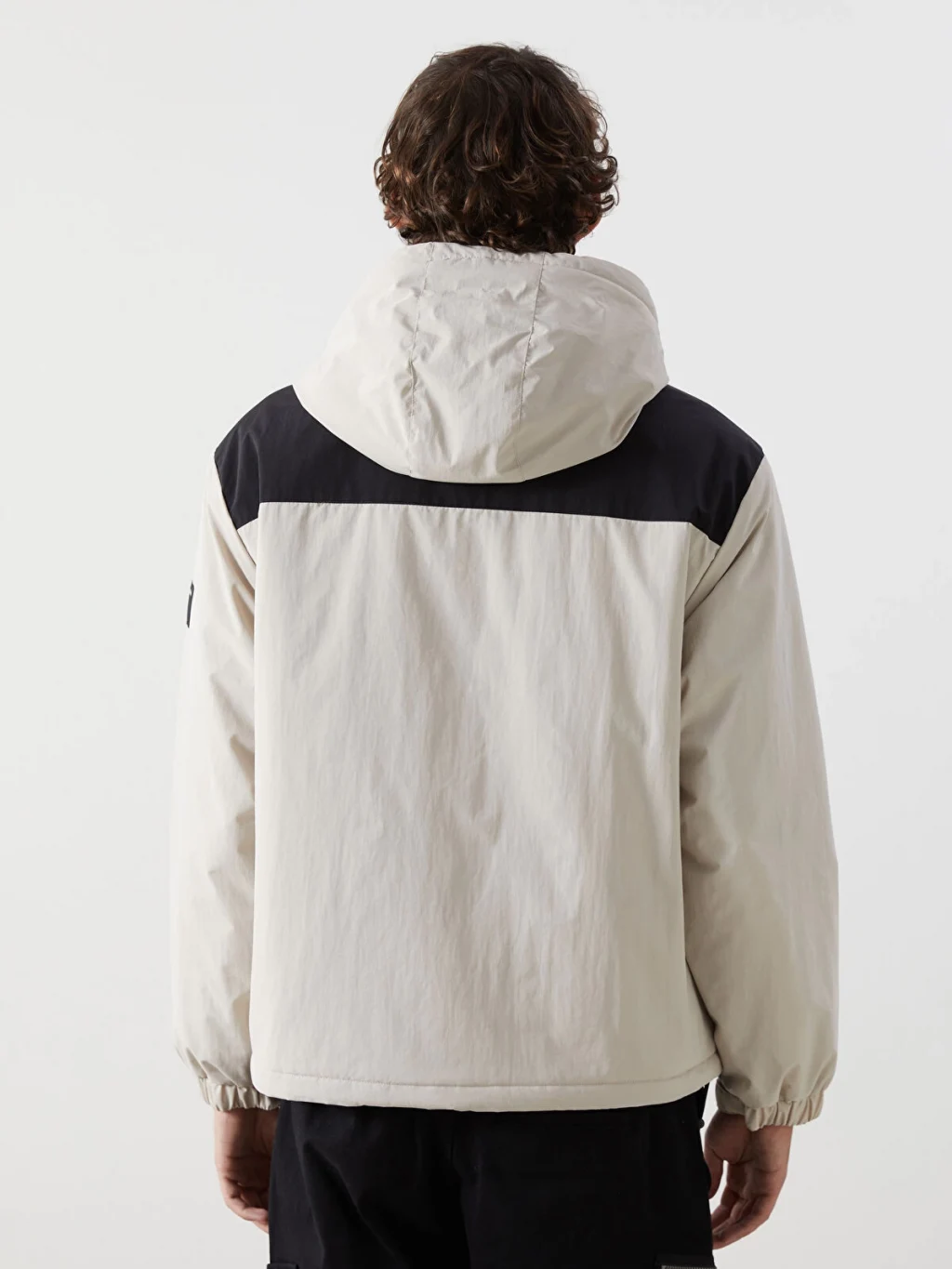 Renk bloğu deseniyle modern bir görünüm sunan rahat kalıp kapüşonlu erkek mont orta kalınlıktaki kumaşıyla serin havalar için ideal. Günlük ve sportif kombinlerinizde şıklık katın.