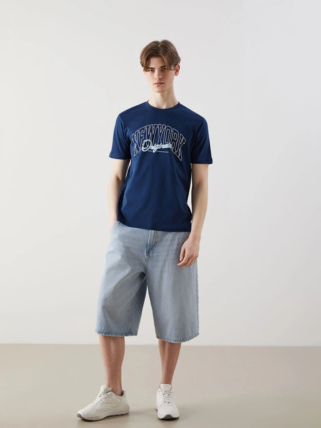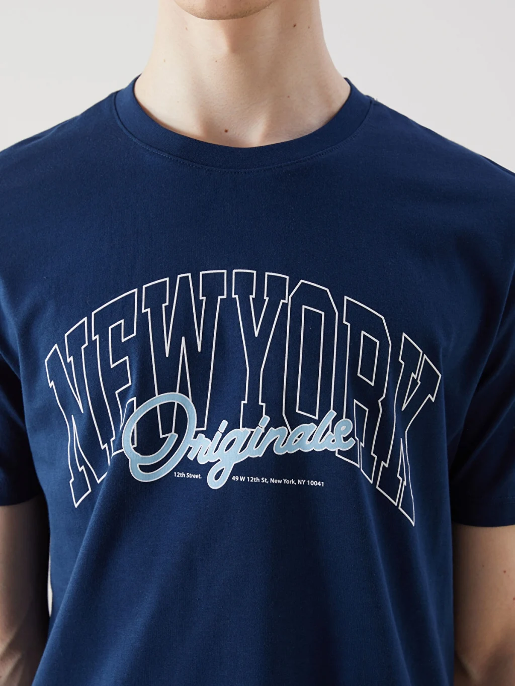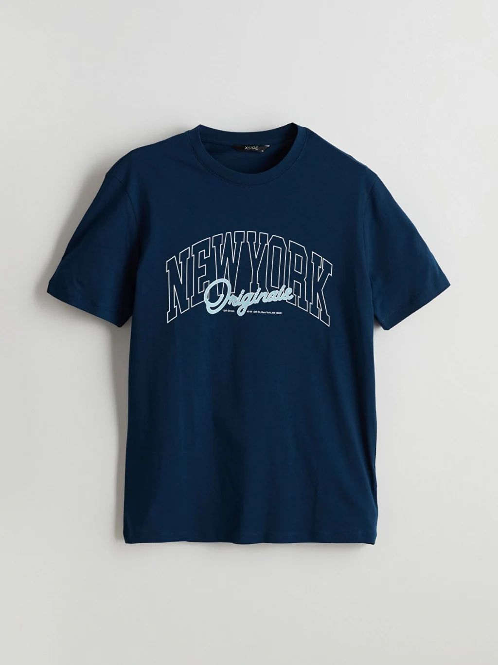 Bisiklet yaka, kısa kollu erkek tişört, %100 pamuklu penye kumaştan üretilmiştir ve ön yüzünde yazı baskısı bulunur.