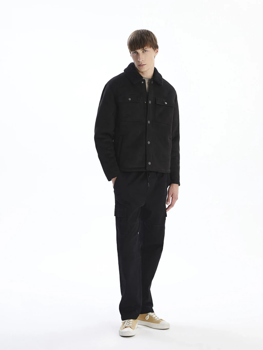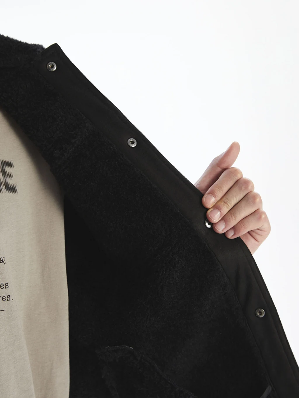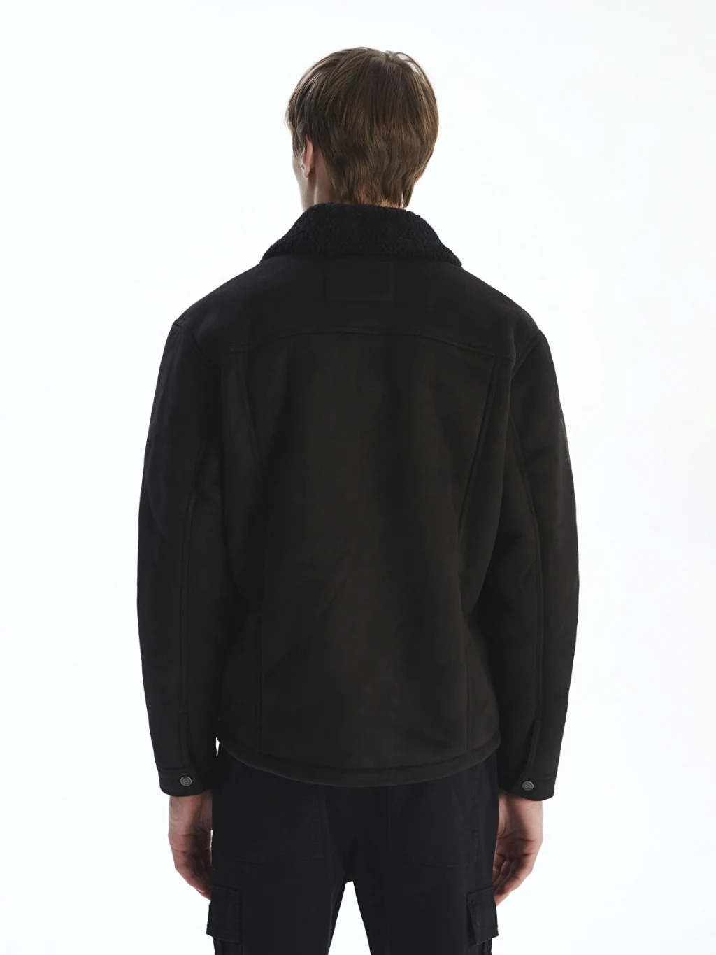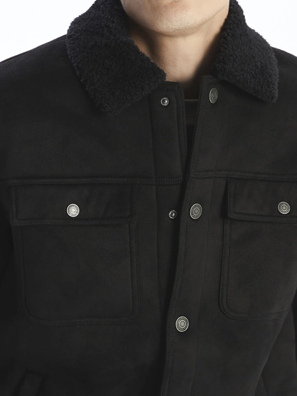 Kürk detaylı yakalı, uzun kollu erkek mont süet kumaştan üretilmiştir. Önden çıtçıt kapamalıdır ve göğüste kapaklı iki cebi bulunur.