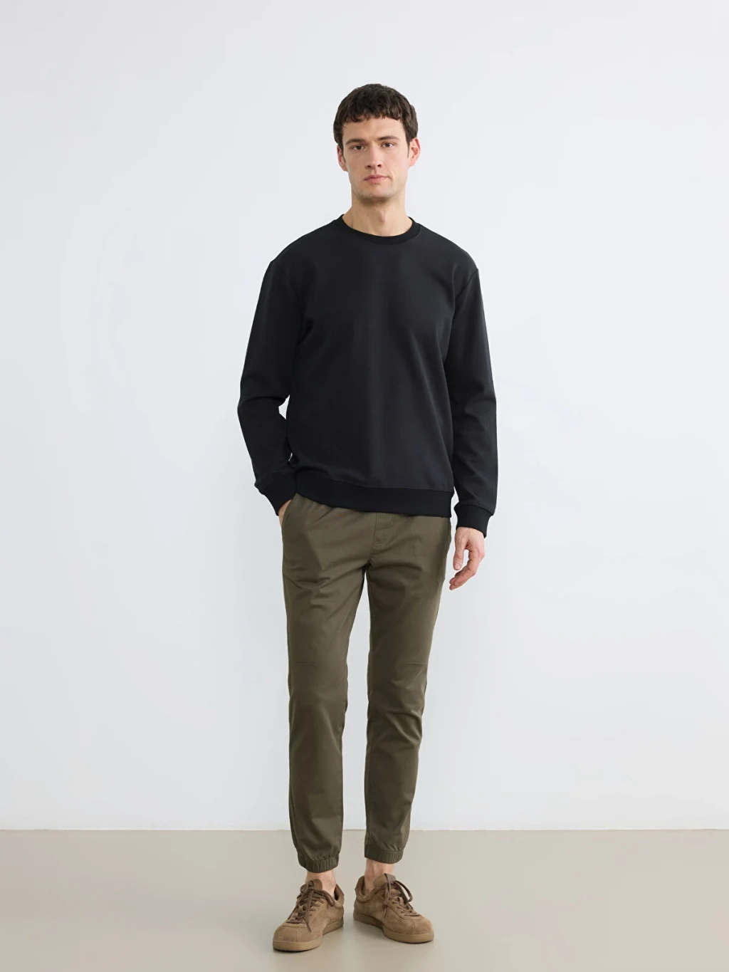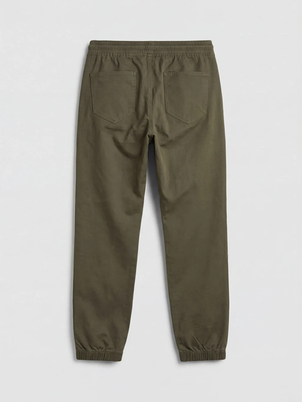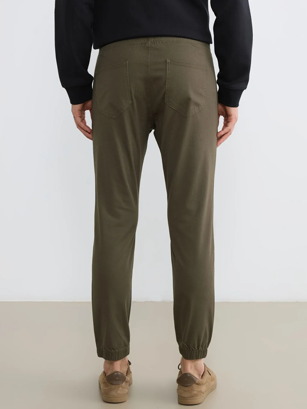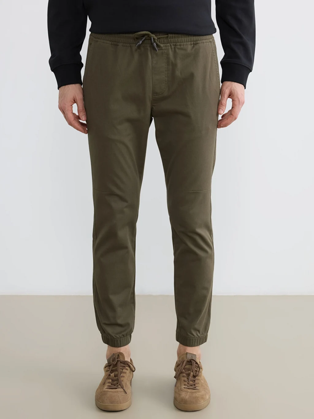 Gabardin kumaştan üretilmiş dar kalıp erkek pantolon, beli lastikli ve ayarlanabilir bağcıklıdır. Paçaları lastikli tasarıma sahiptir ve yan cepleri bulunur.
