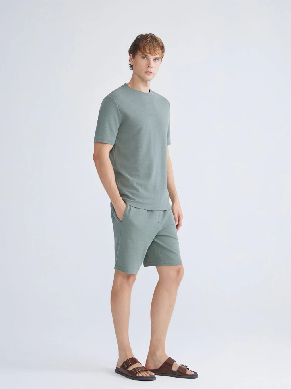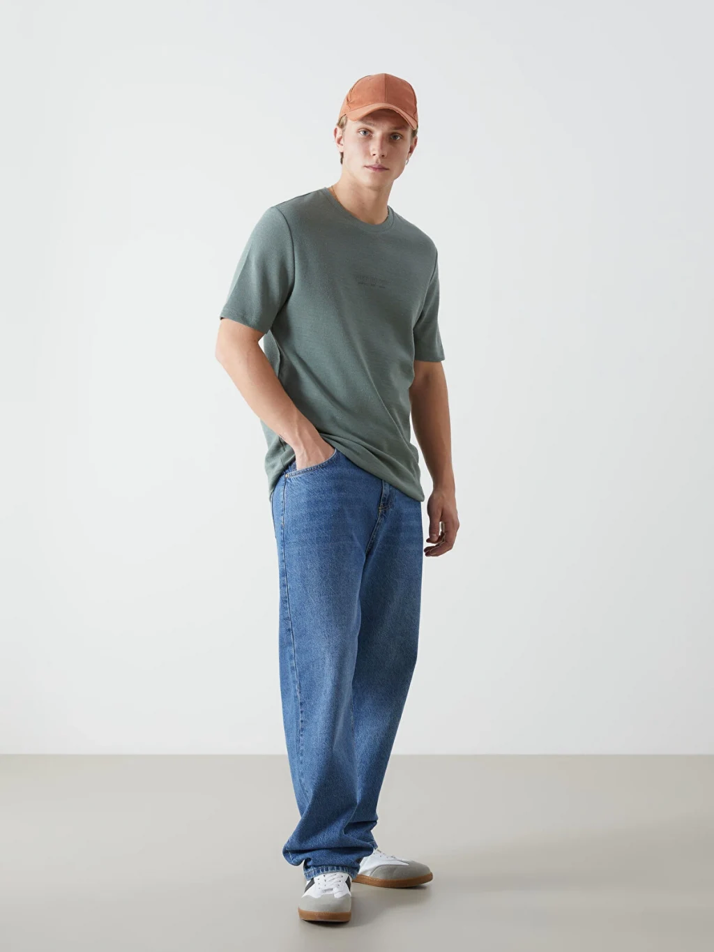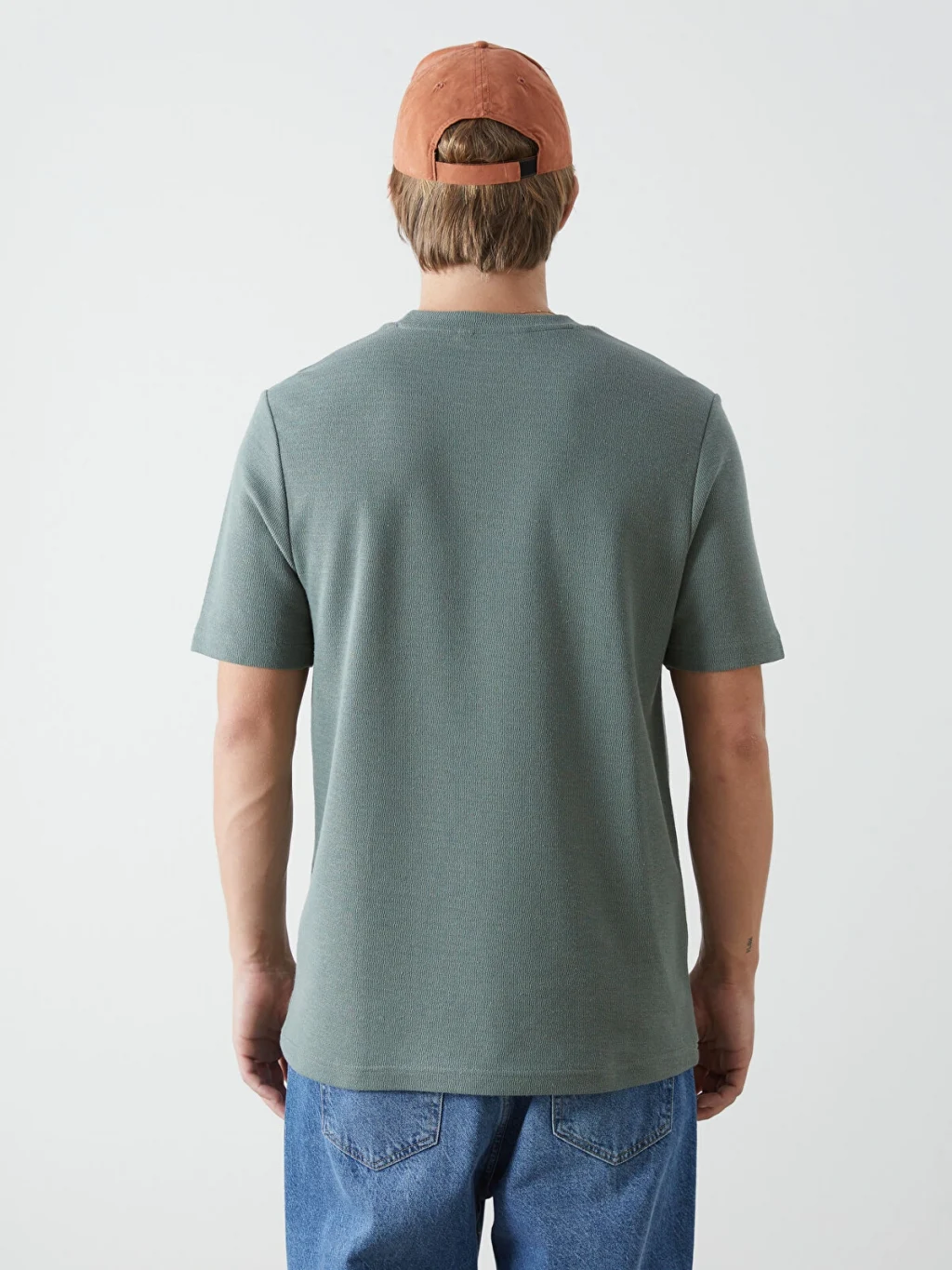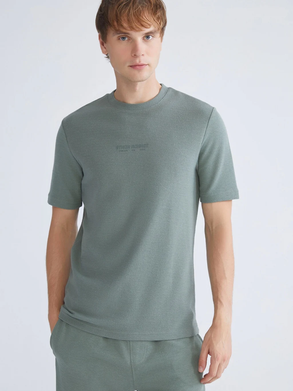 Standart kalıplı erkek tişört, yüksek pamuk içerikli jakar kumaştan üretilmiştir. Bisiklet yaka ve kısa kolludur.