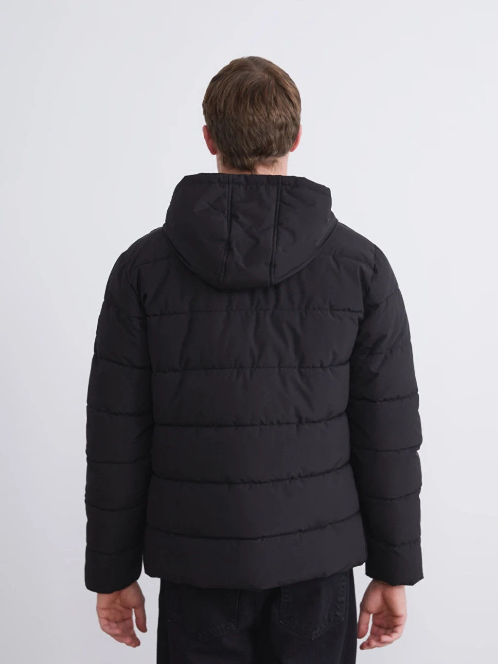 XSIDE Siyah Standart Kalıp Kapüşonlu Erkek Şişme Mont