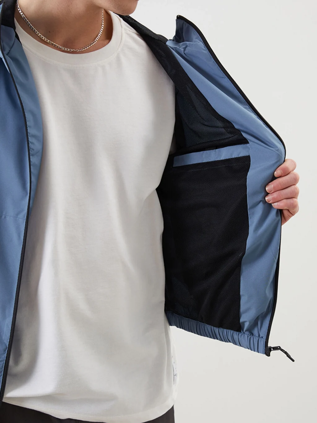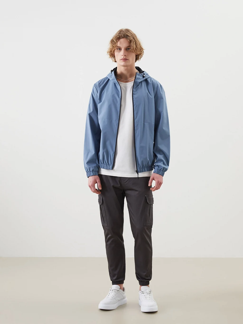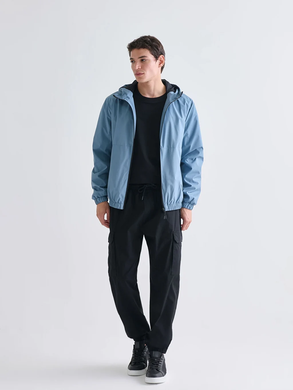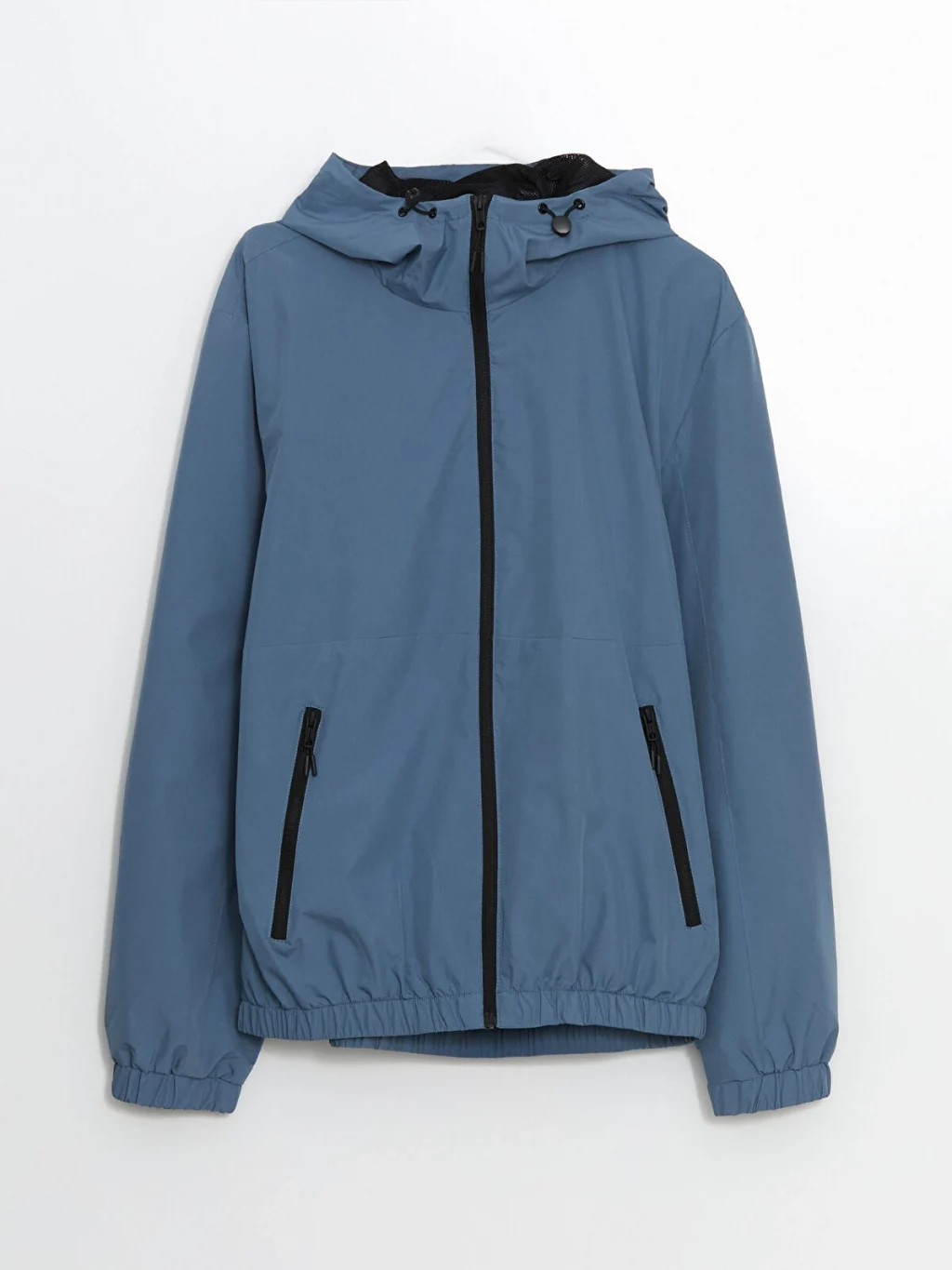 Kapüşonlu ve uzun kollu erkek yağmurluk, önden fermuar kapamalıdır. Yanlarda fermuarlı cepleri bulunur, kol ve etek ucu lastiklidir.
