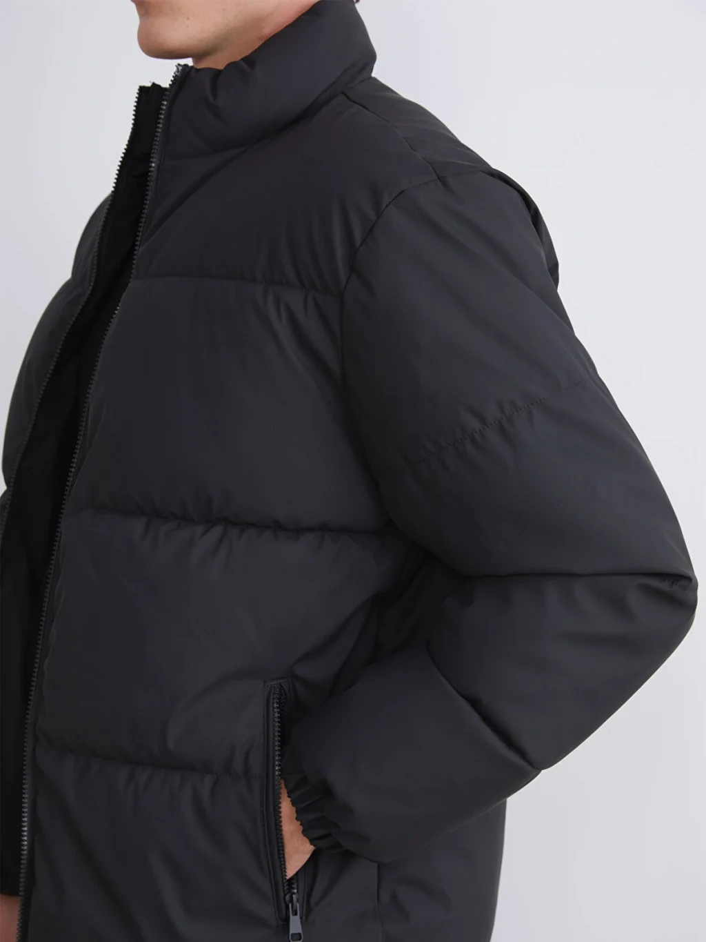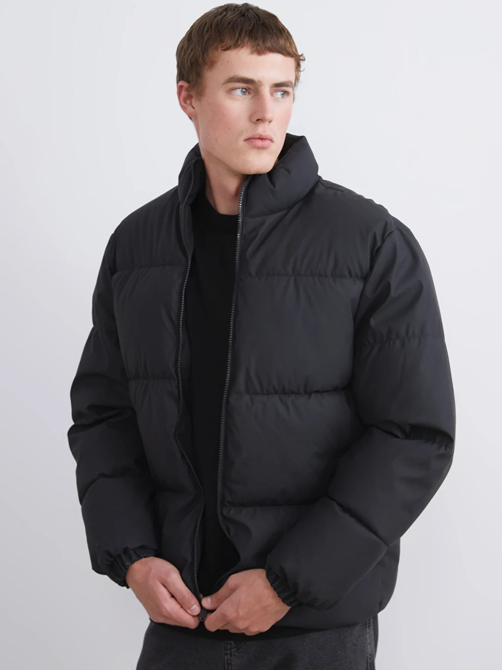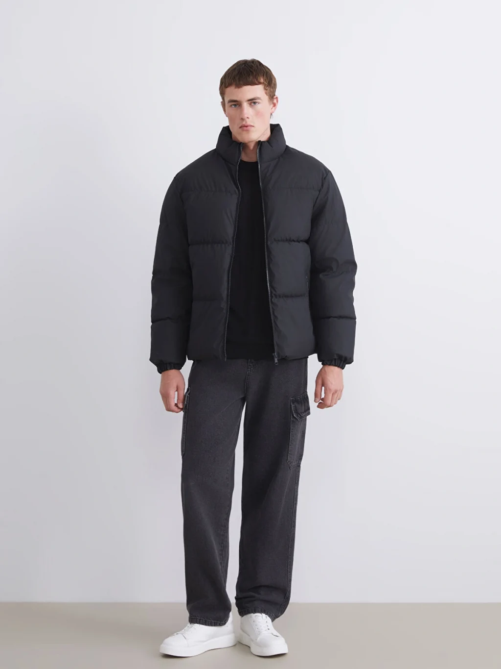 Dik yakalı erkek şişme mont, önden fermuar kapamalıdır. Uzun kollu modelin kol ve etek uçları lastiklidir. Dik yakalı, uzun kollu erkek şişme mont, önden fermuar kapamalıdır. Kol uçları ve etek ucu lastiklidir.