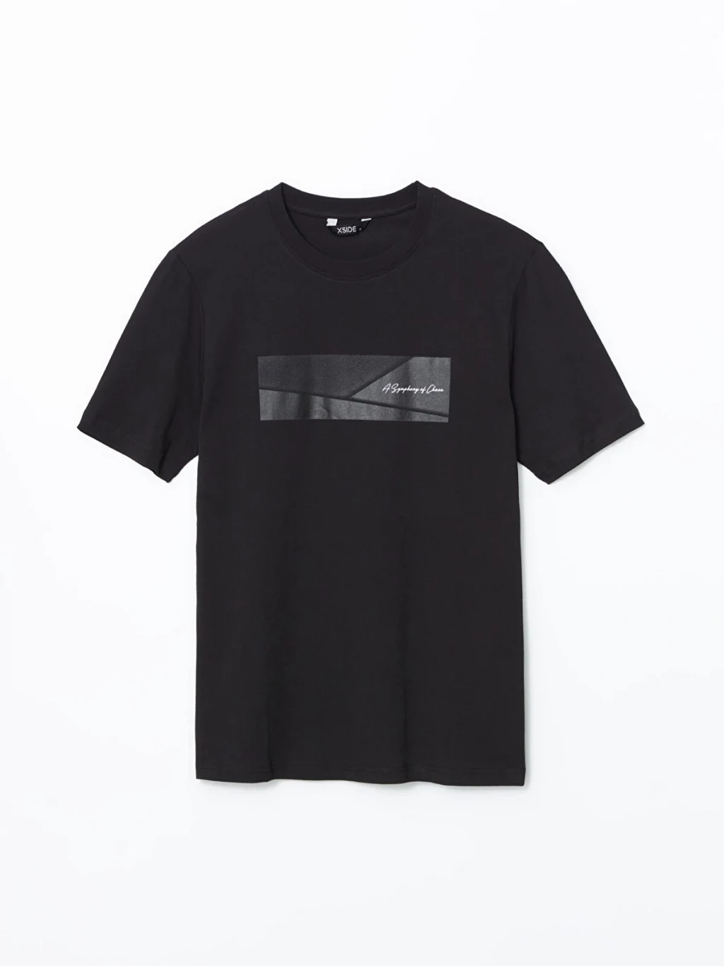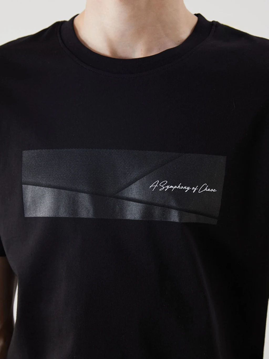 Standart kalıp erkek tişört, %100 pamuklu penye kumaştan üretilmiştir. Bisiklet yaka, kısa kollu ve göğüs baskılı tasarıma sahiptir.