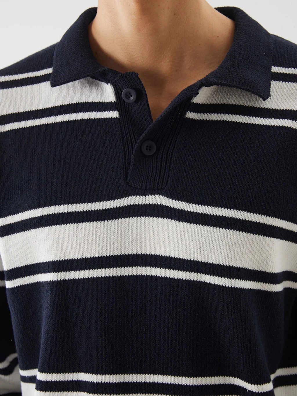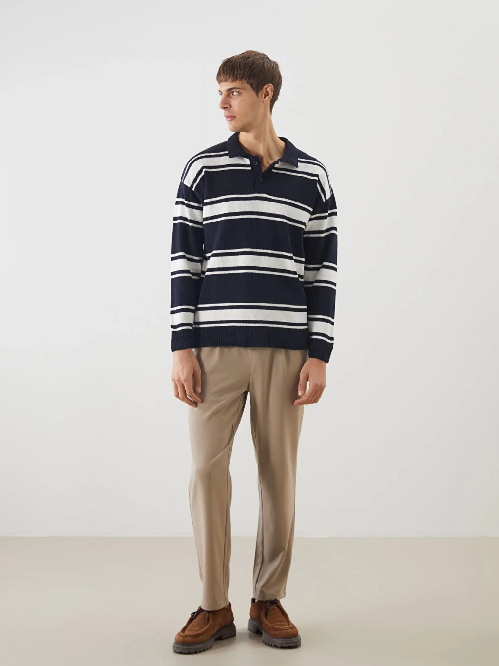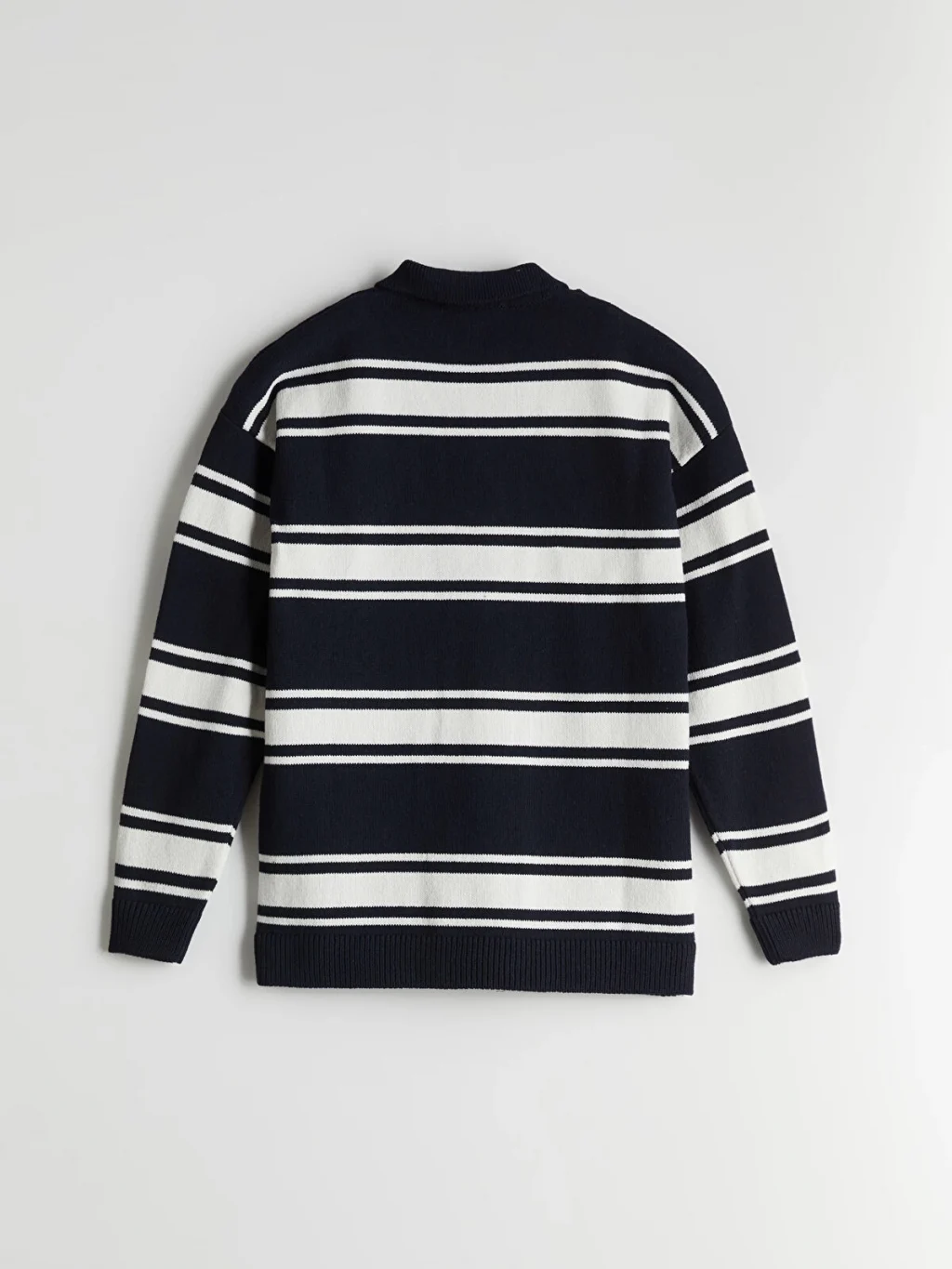 XSIDE Lacivert Polo Yaka Çizgili Erkek Triko Kazak
