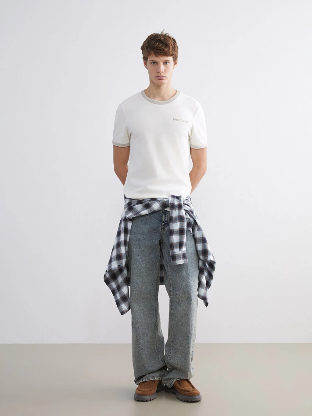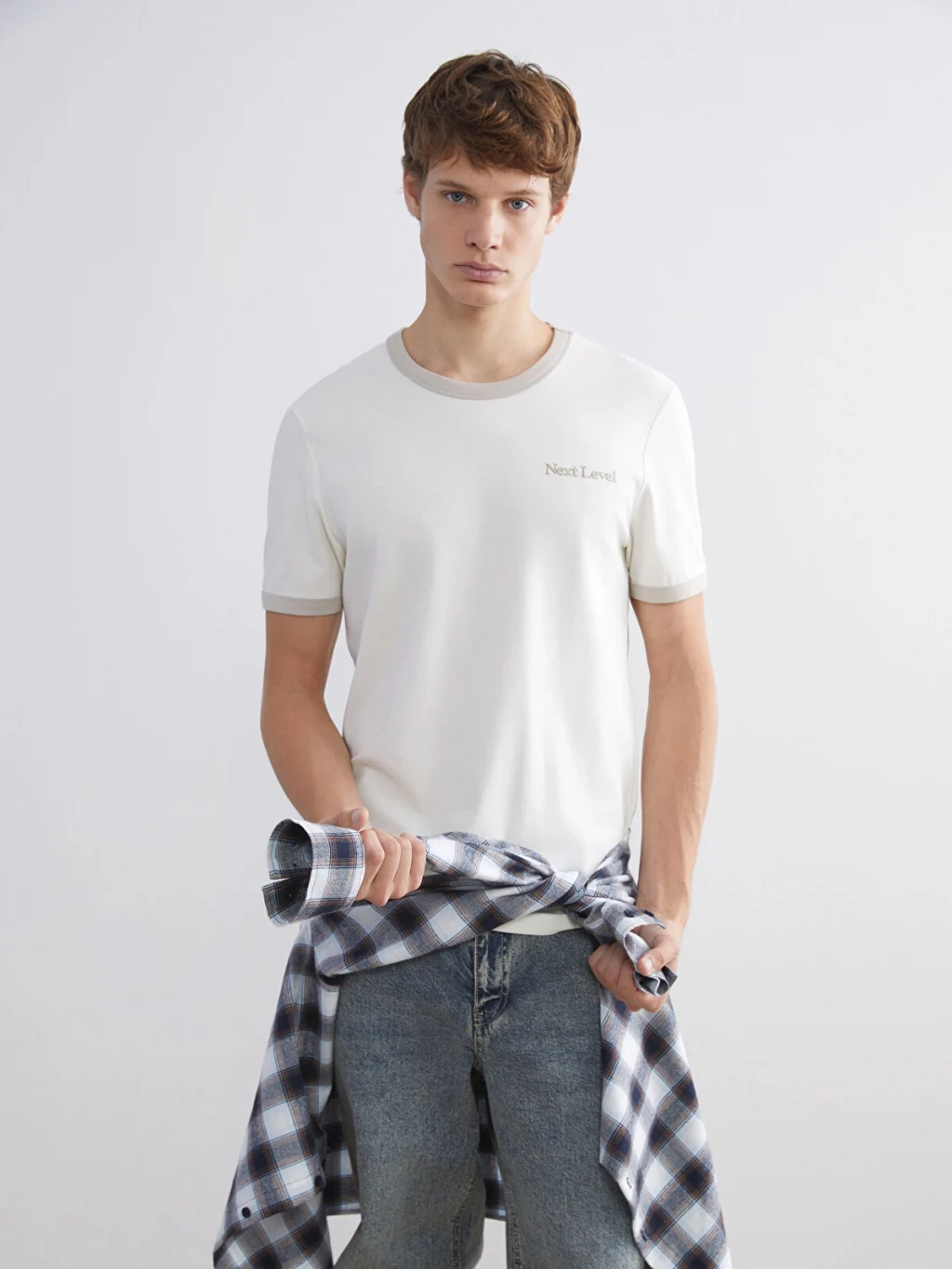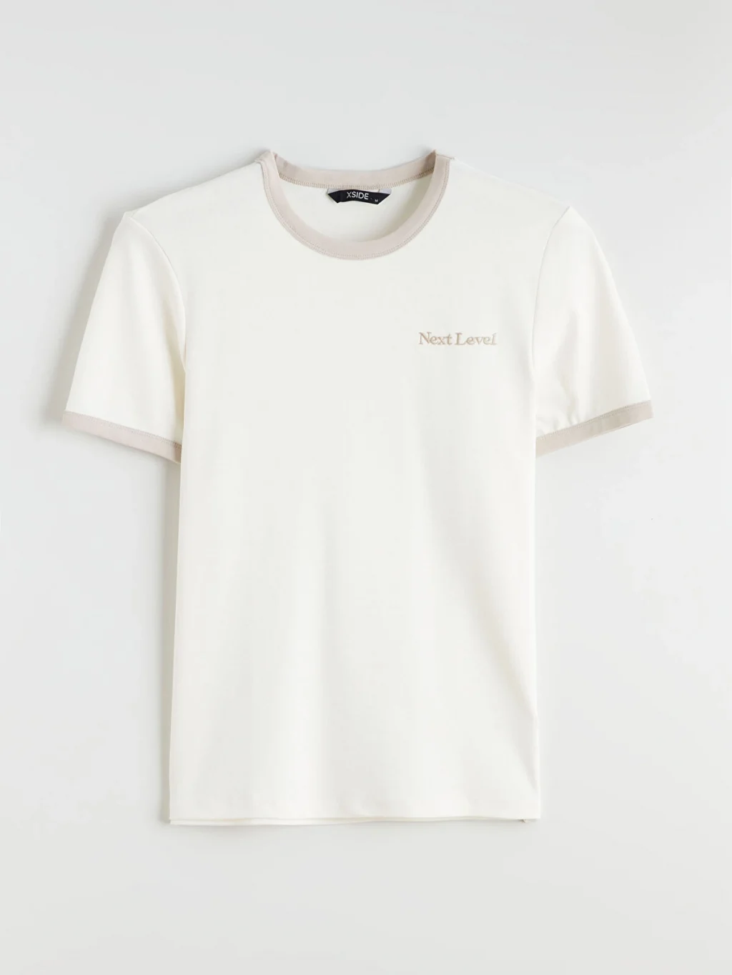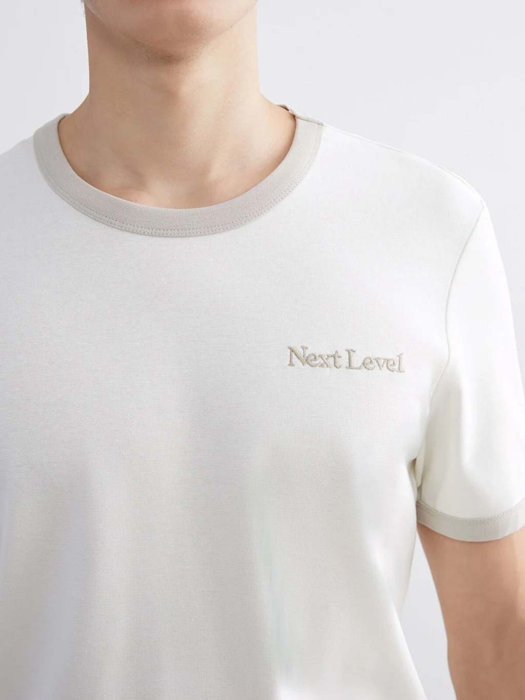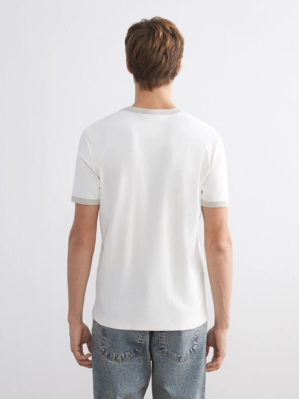 Yüksek pamuk içerikli ribana kumaştan üretilen standart kalıp erkek tişört, bisiklet yakalı ve kısa kolludur. Yaka ve kol ağzı biyelidir.