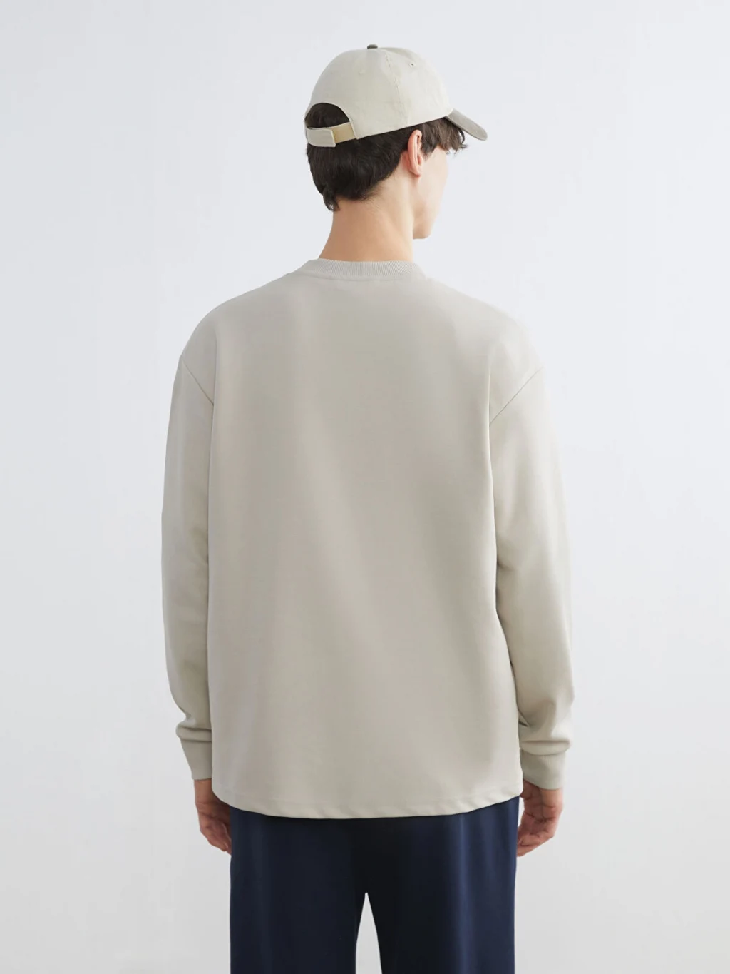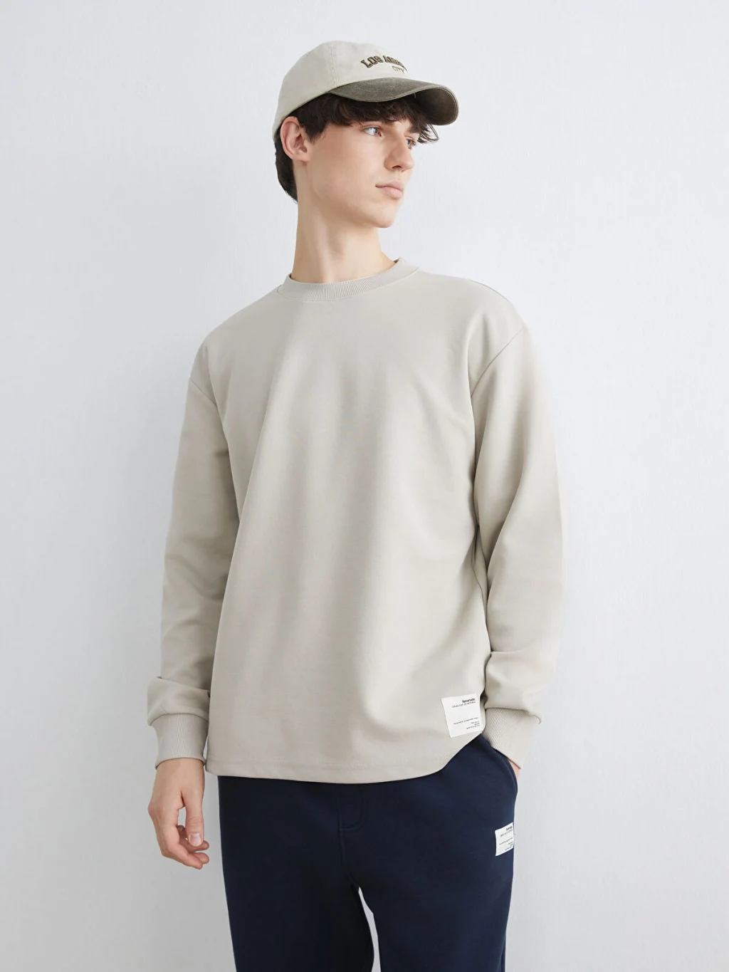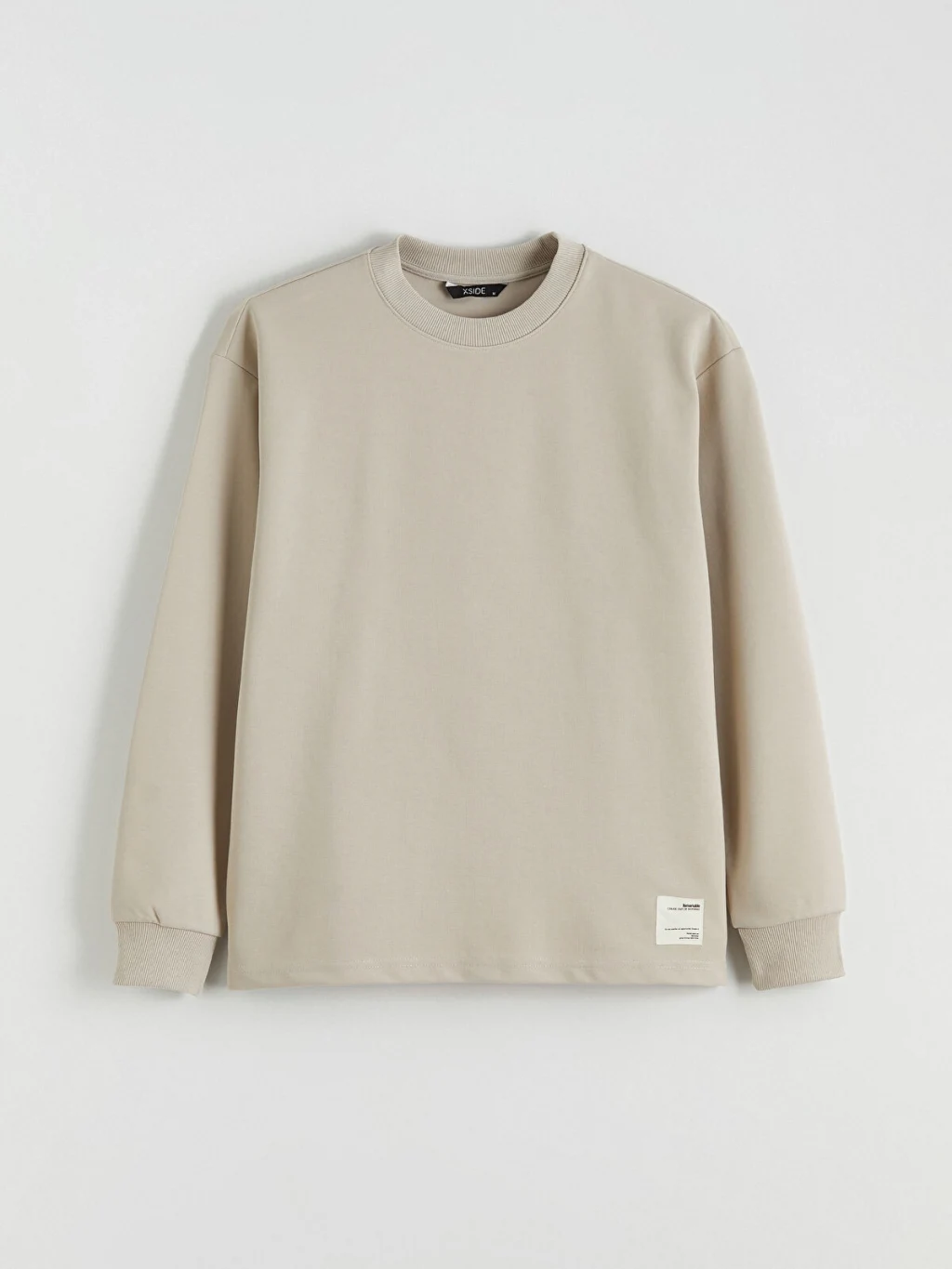 Bisiklet yaka, uzun kollu erkek sweatshirt, interlok kumaştan üretilmiştir. Kol uçları ribanalı, etek ucu etiketlidir.