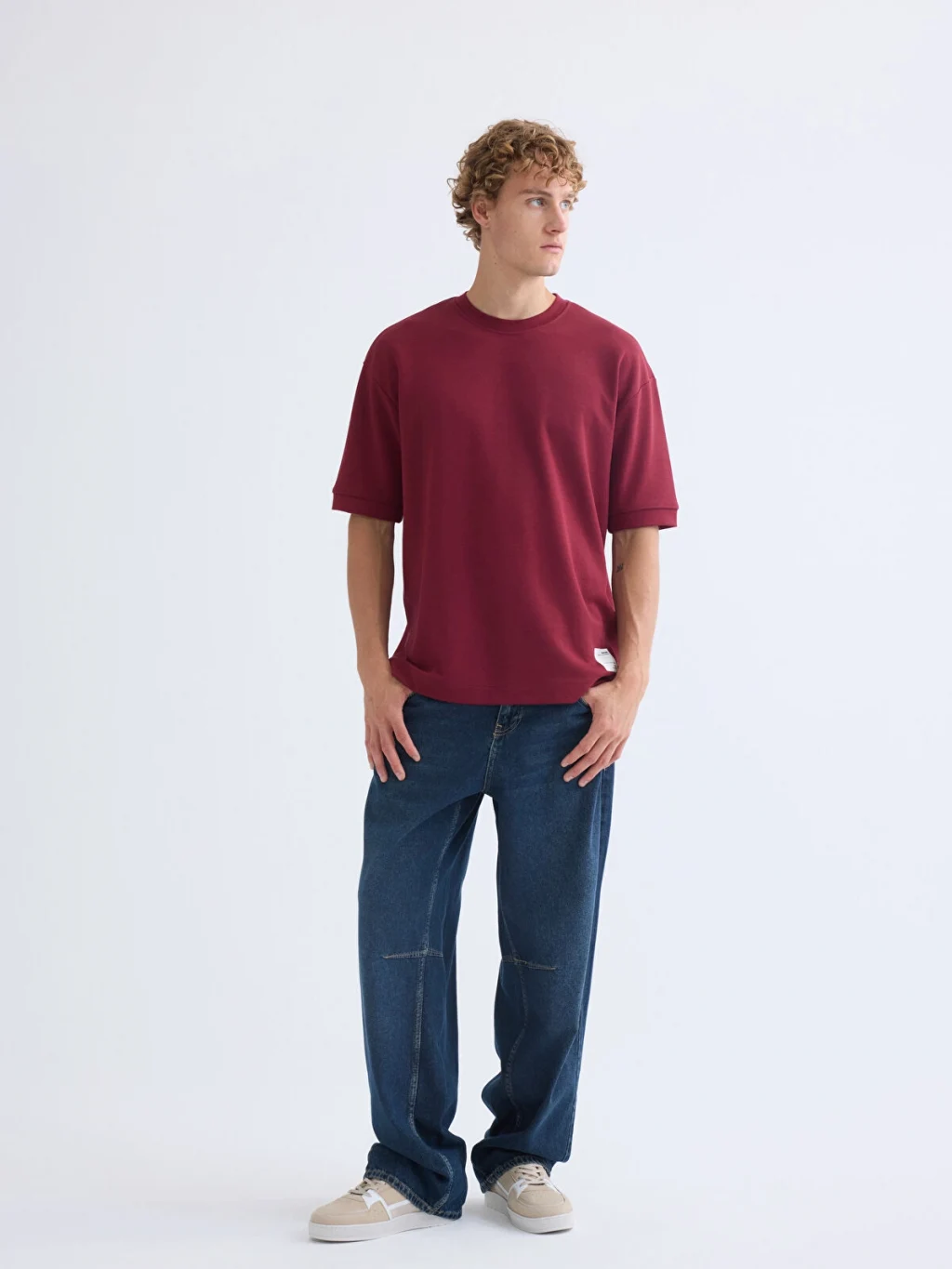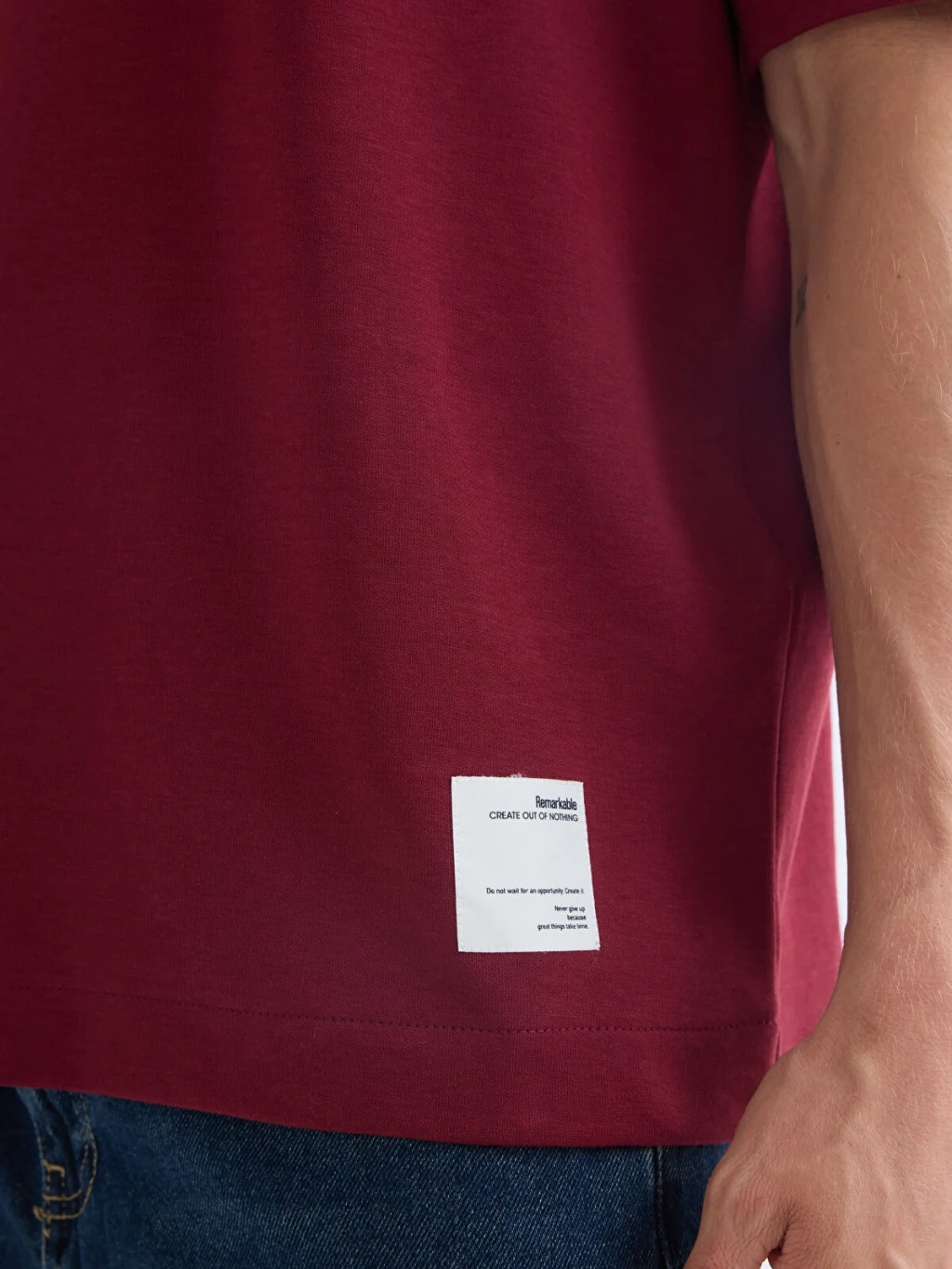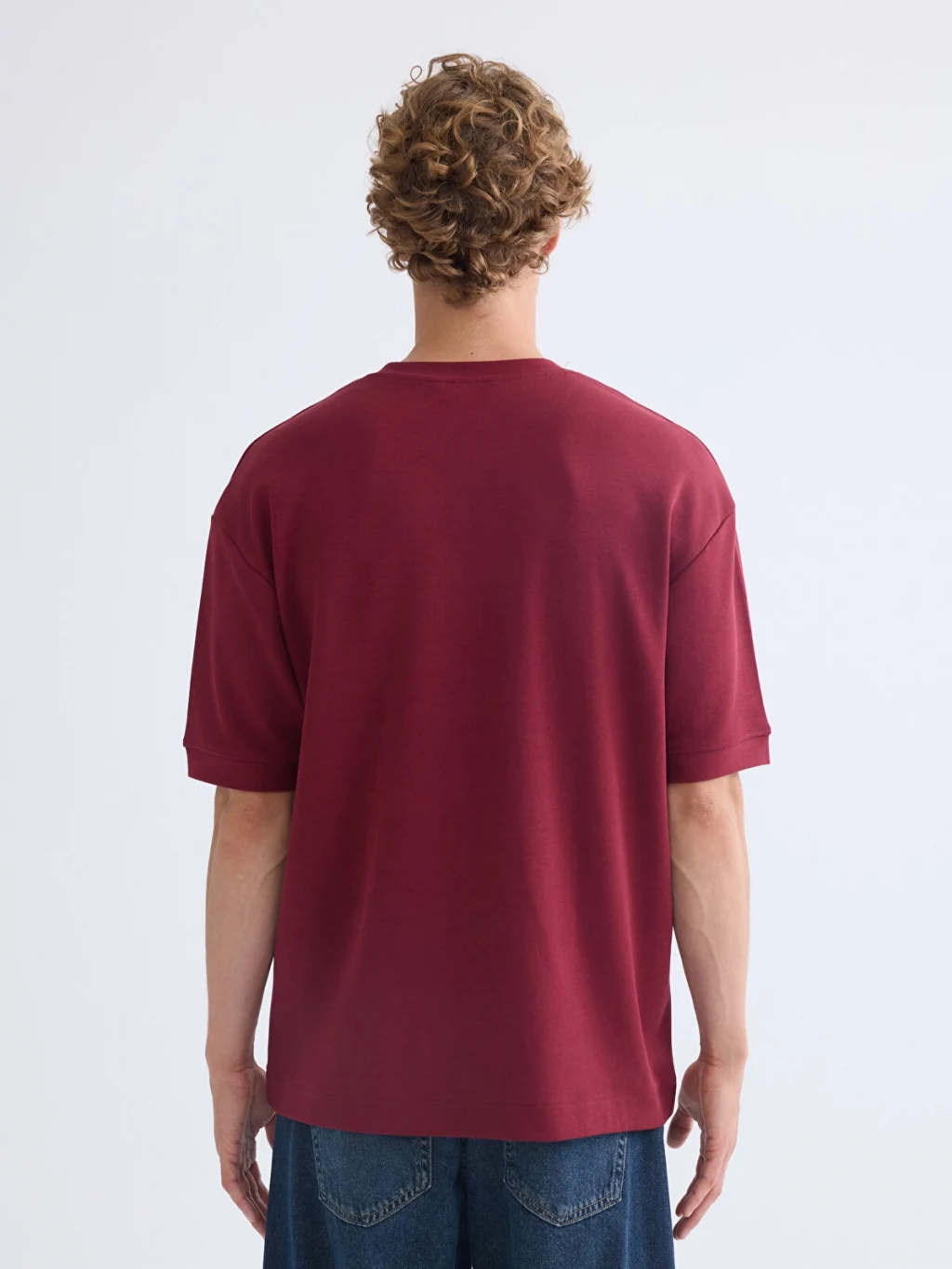 Yüksek pamuk içerikli interlok kumaştan üretilmiş erkek tişört, bisiklet yaka ve kısa kolludur. Bol kalıplı ürünün etek ucunda etiket detayı vardır.