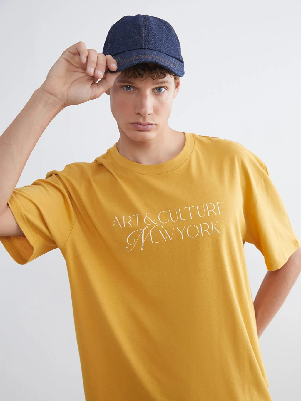 Bisiklet yaka tasarıma sahip olan erkek tişört, kısa kolludur. Penye kumaştan üretilmiş olup baskı detaylarıyla tamamlanmıştır.