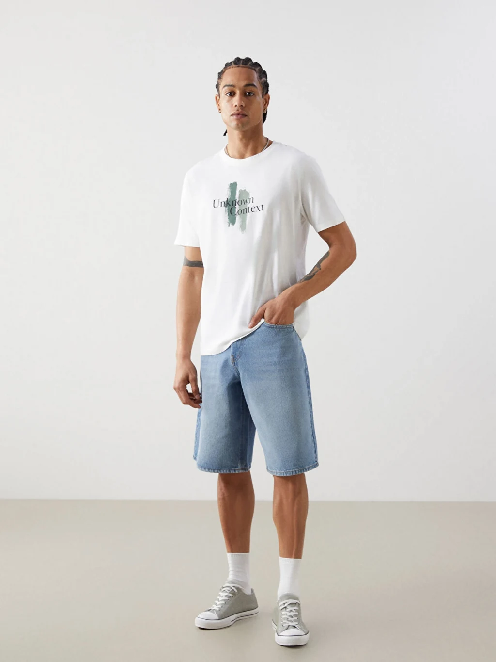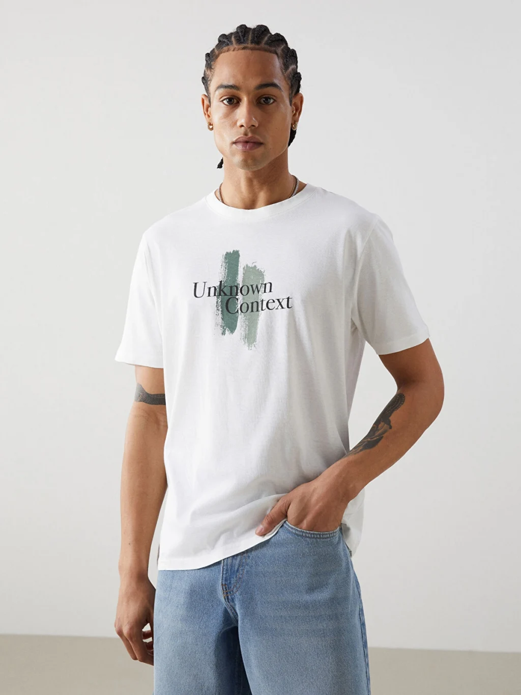 Standart kalıplı, bisiklet yaka erkek tişört, %100 pamuklu penye kumaştan üretilmiştir. Kısa kollu ve önü yazı ve desen baskılıdır.
