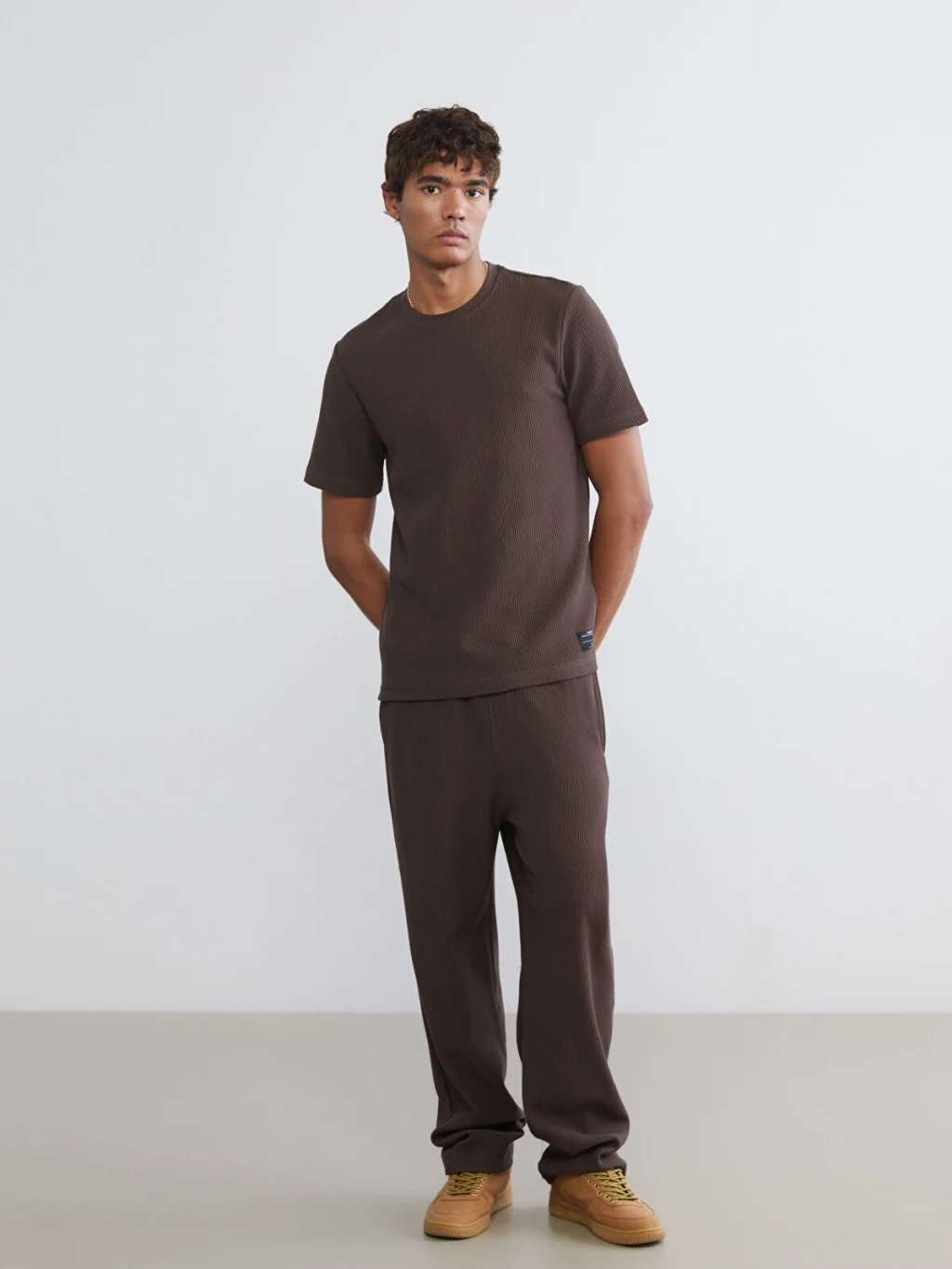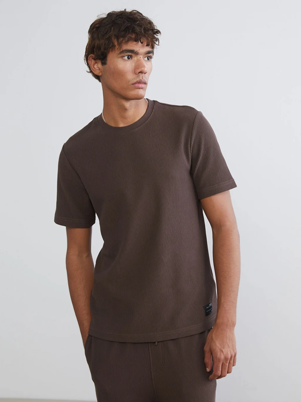 Standart kalıp erkek tişört, yüksek pamuk içerikli fitilli kumaştan üretilmiştir. Bisiklet yaka ve kısa kolludur.