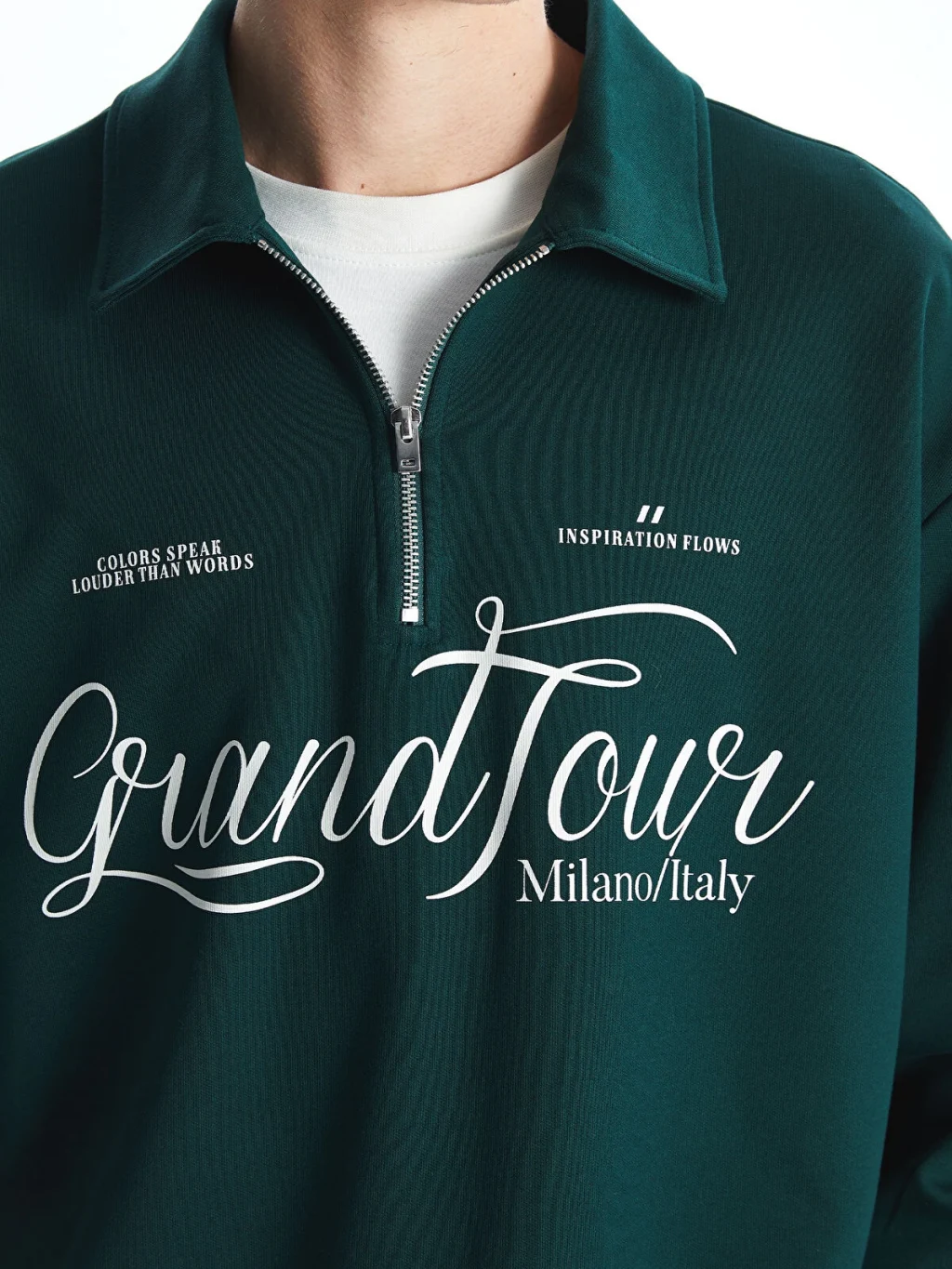 Sweatshirt, kaliteli sweatshirt kumaşından üretilmiş olup, sıcak ve rahat bir deneyim sunar. Dik yaka tasarımı, hem modern bir görünüm sağlar hem de ekstra boyun koruması sunar.