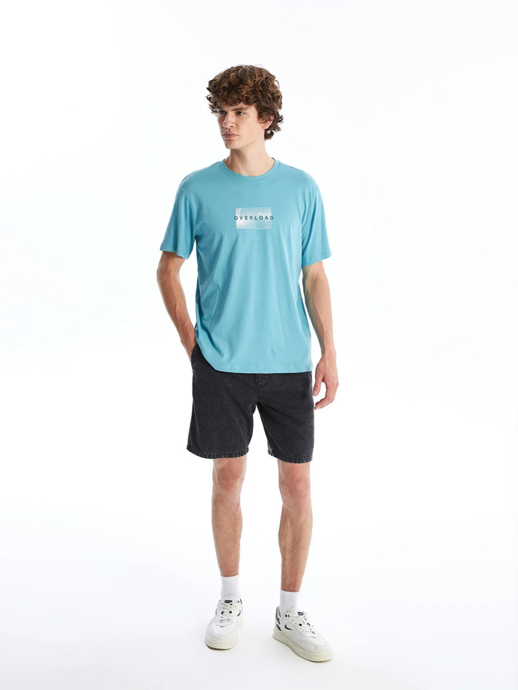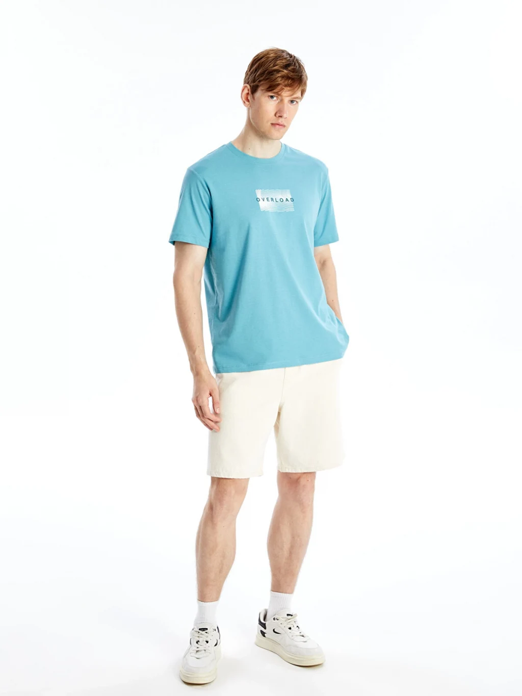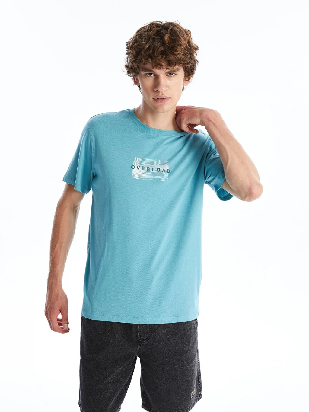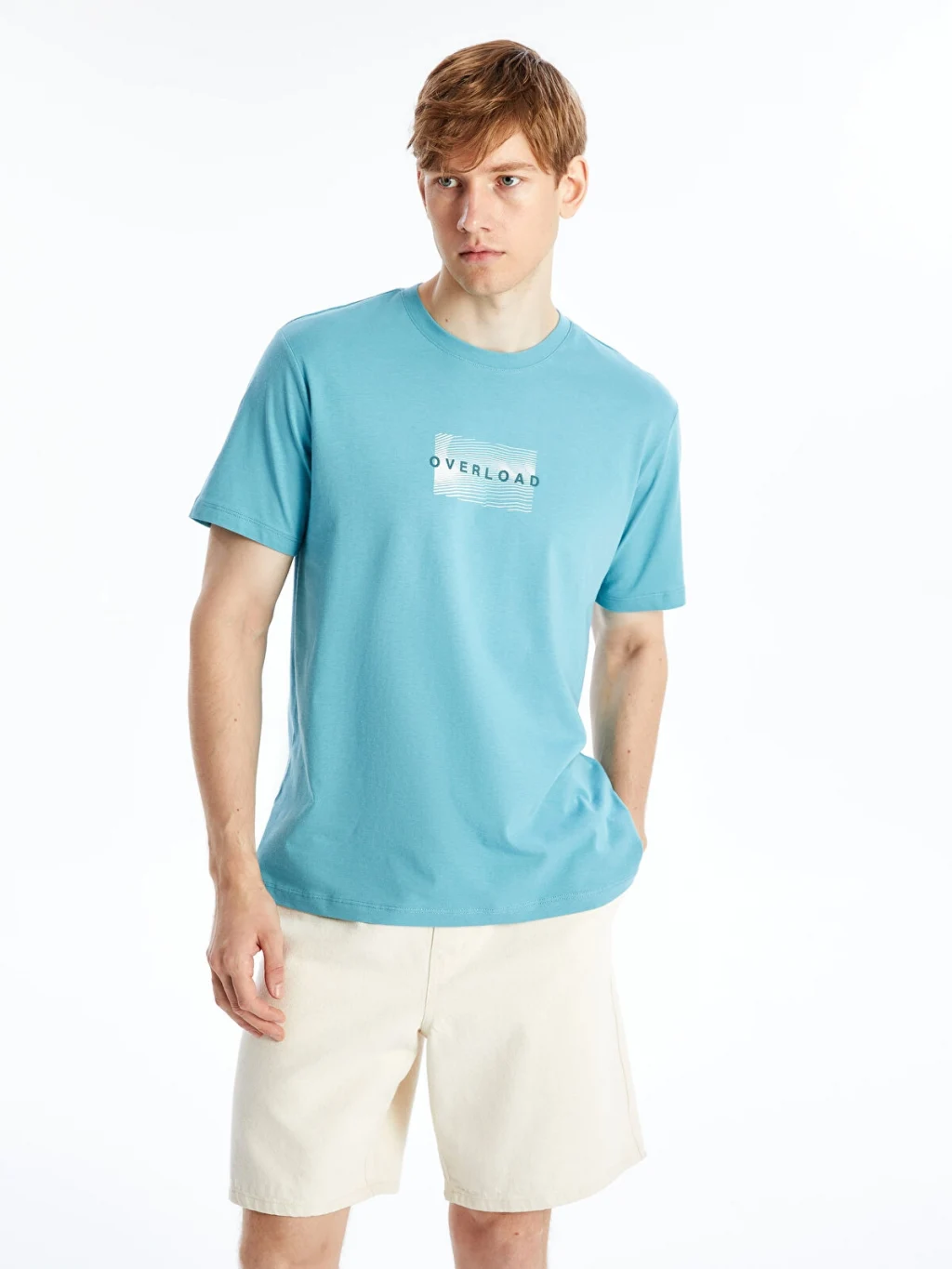 Standart kalıp, bisiklet yaka ve kısa kollu erkek tişört, %100 pamuklu penye kumaştan üretilmiştir. Önü baskılıdır.