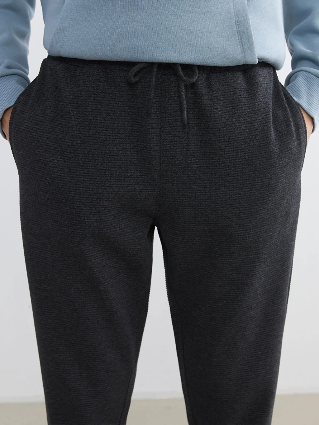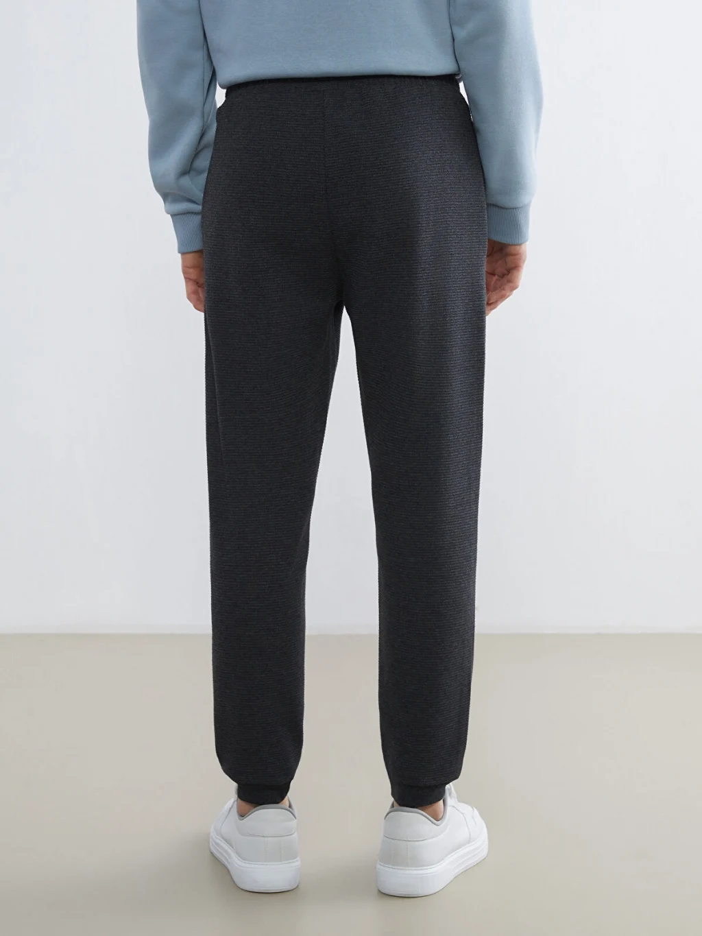 Beli lastikli ve ayarlanabilir bağcıklı erkek eşofman altı, orta kalınlıkta ottoman kumaştan üretilmiştir. Paçaları ribanalıdır.
