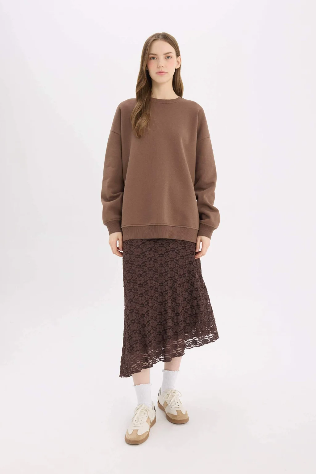 Yetişkin kadınlar için özel olarak tasarlanmış kışlık siyah oversize sweatshirt. Uzun kollu ve kalın kumaştan üretilmiştir. Okula dönüş günleri için mükemmel bir seçimdir. Bisiklet yakalı ve ribanalı detaylarla şıklığı ön plana çıkarır. Ana çeşit kategorisinde yer alır, örme giyim sevenler için idealdir.