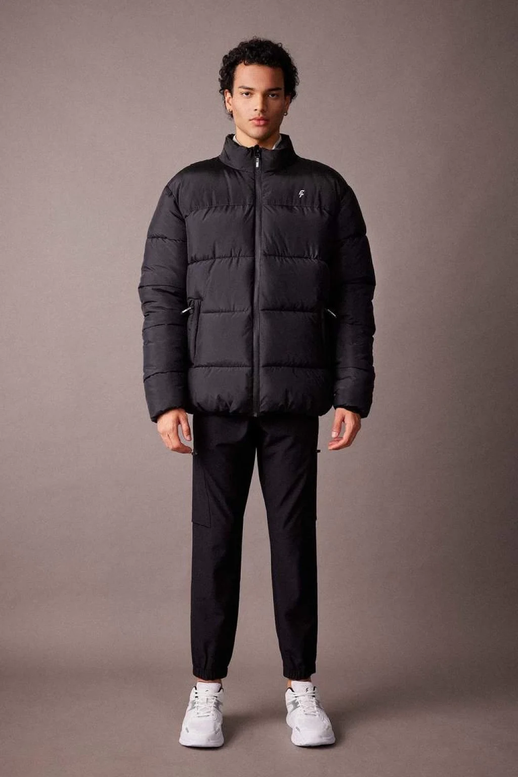 Defacto A3519AXBK81 Siyah DeFactoFit Su İtici Rüzgar Geçirmez Slim Fit Dar Kesim Kapüşonlu Fermuarlı Cepli Kışlık Mont