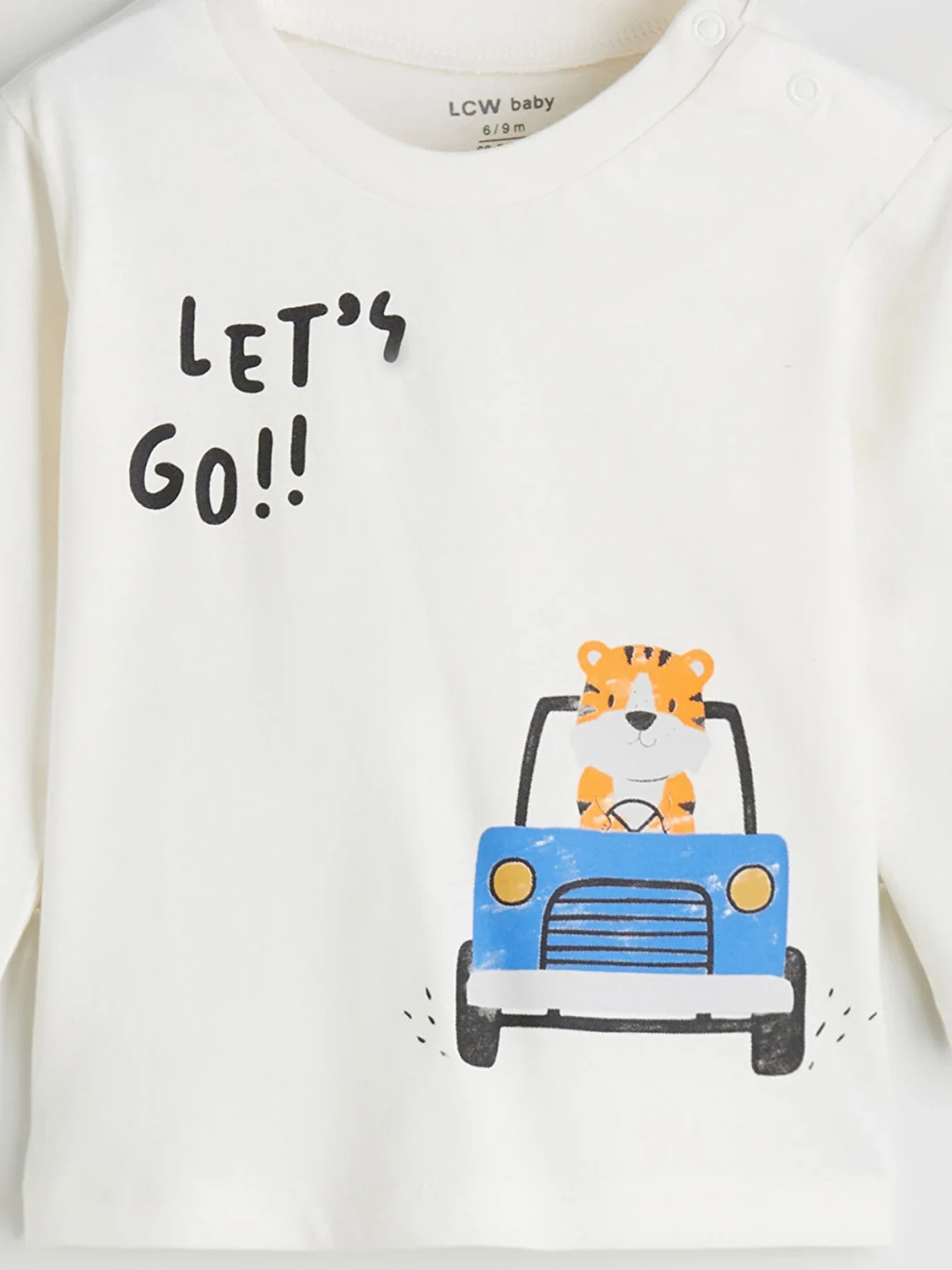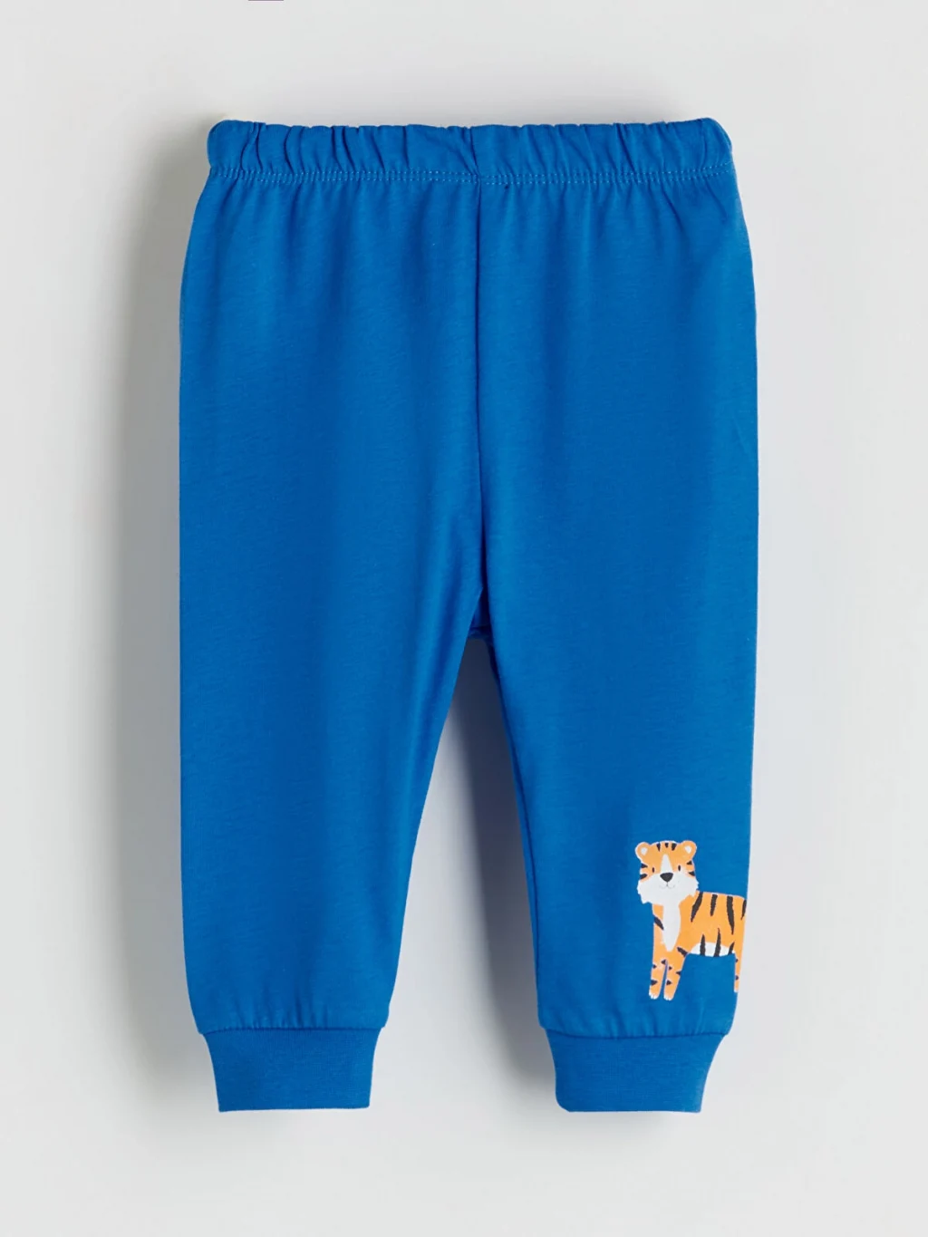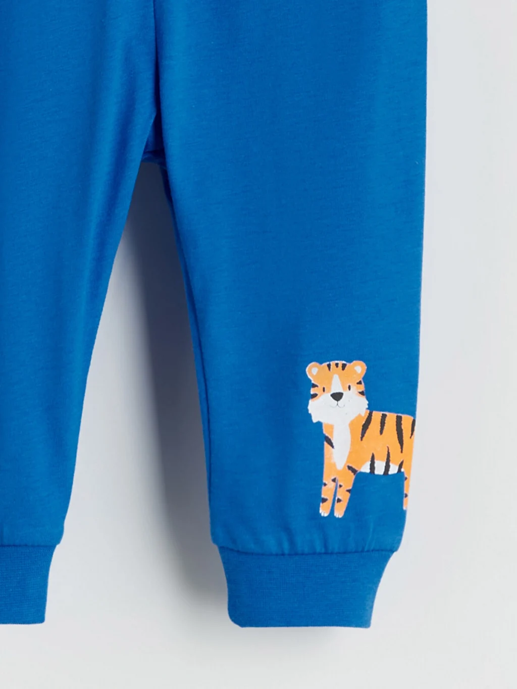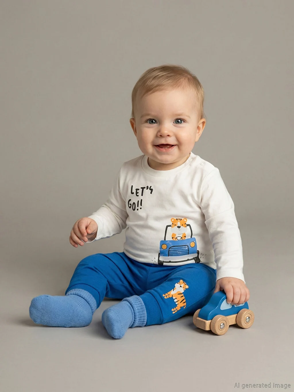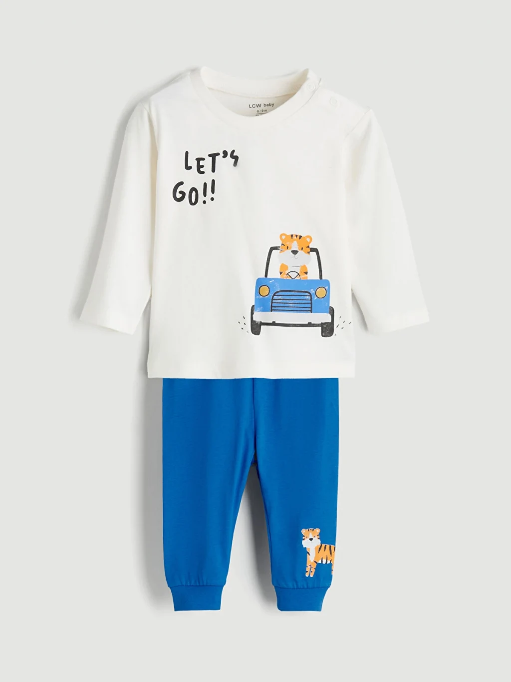 Erkek bebek sweatshirt ve eşofman alt takım, pamuklu kumaştan üretilmiştir. Baskılı ve ribanalı tasarıma sahiptir.