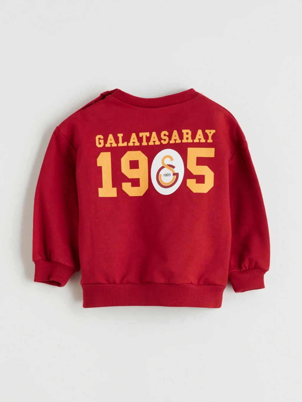 Erkek bebek sweatshirt ve eşofman alt takım, 2 iplik kumaştan üretilmiştir. Baskılı ve ribanalı tasarıma sahiptir.
