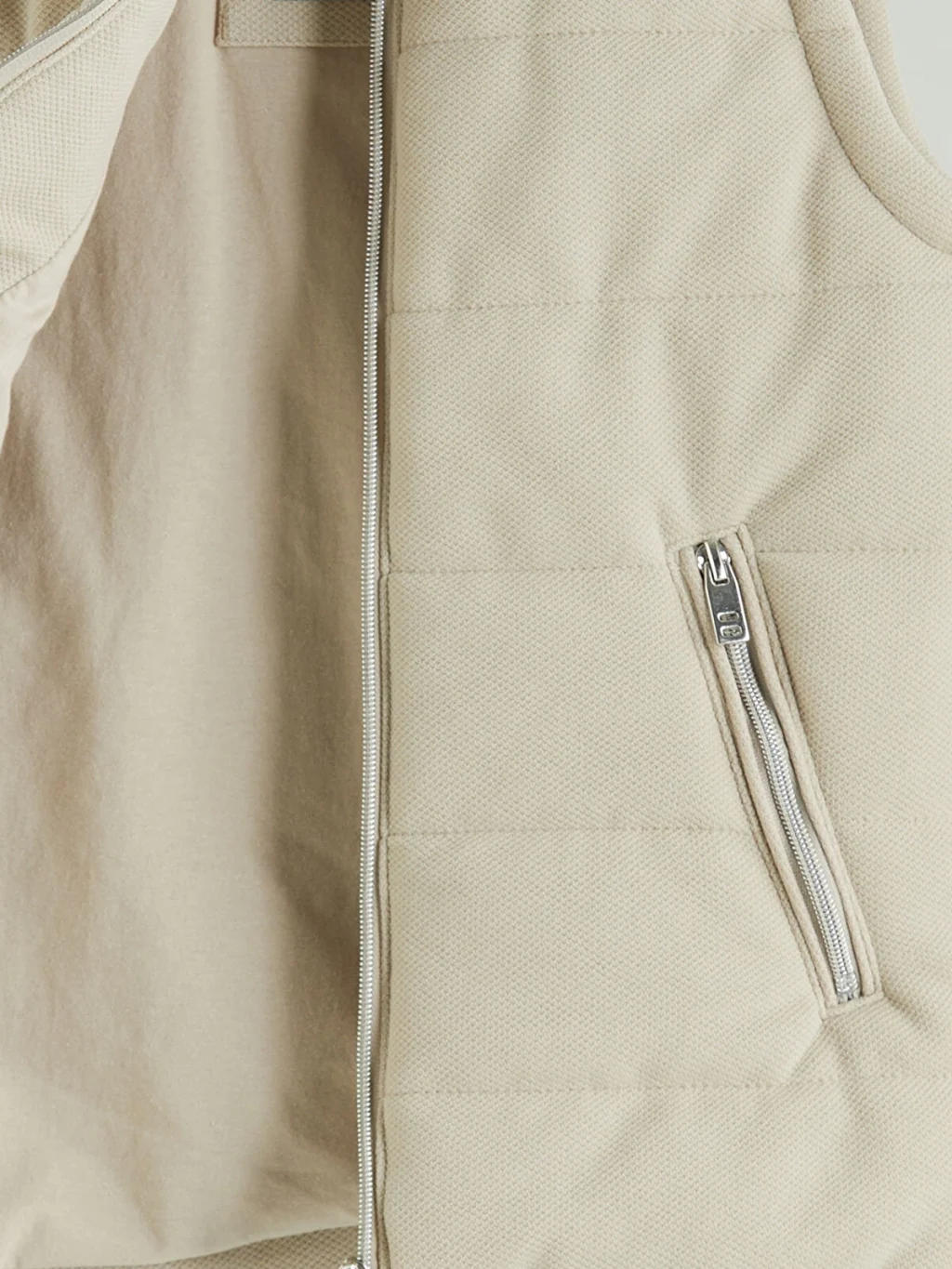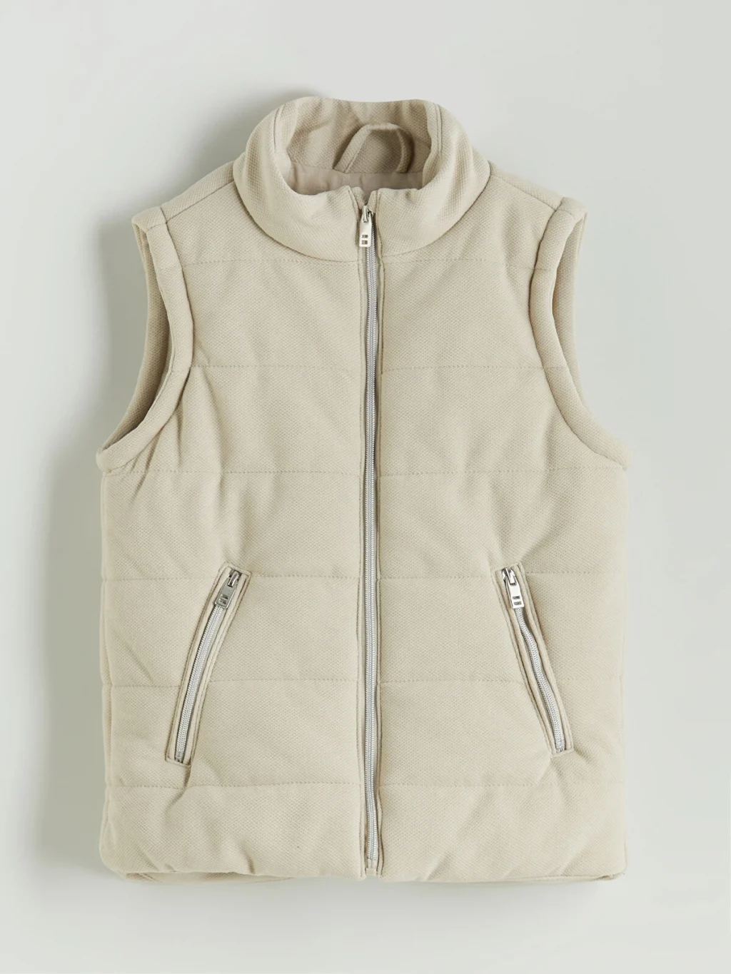 Dik yaka, fermuarlı cepli yelek.