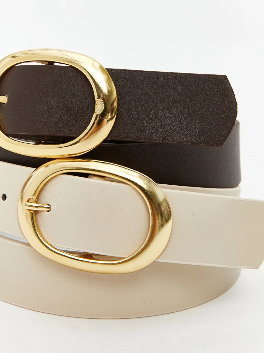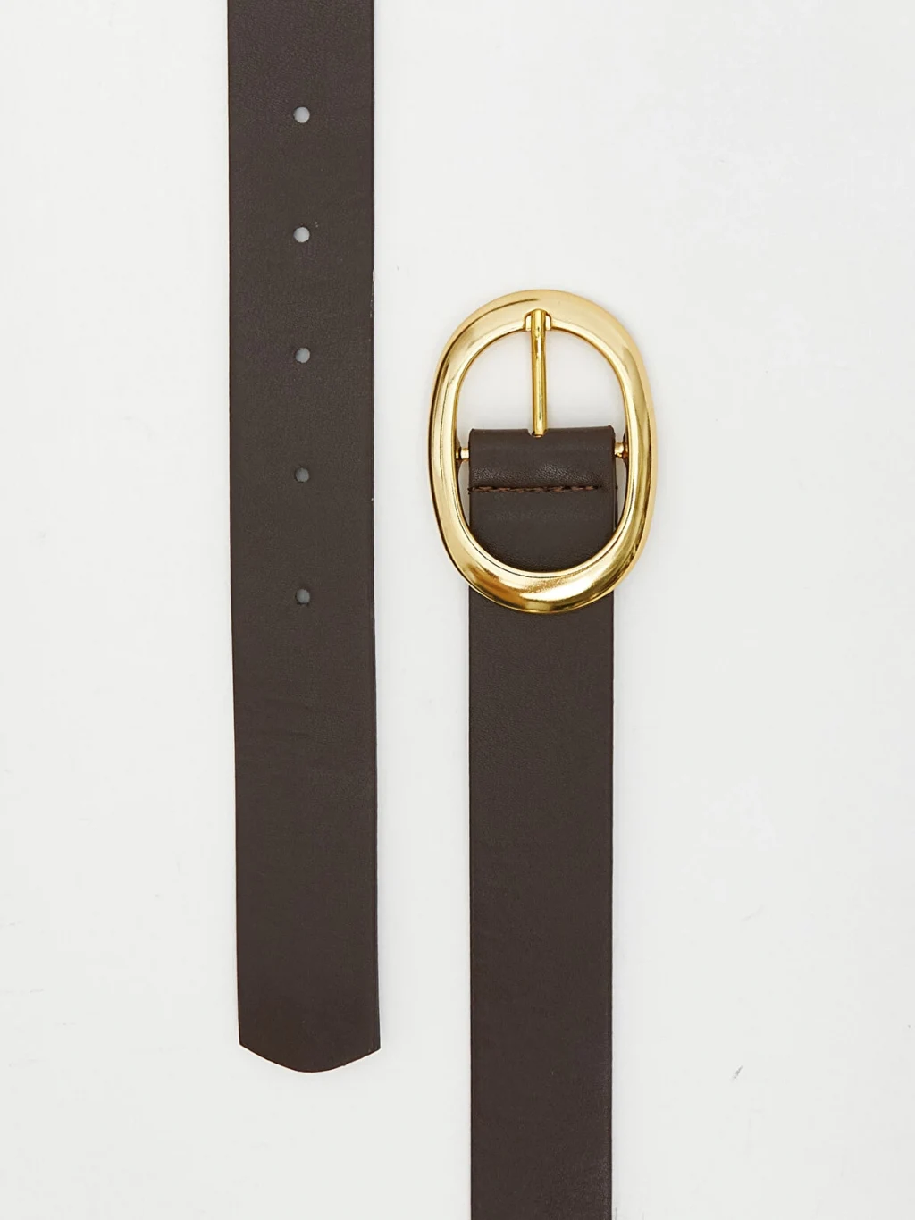 Deri görünümlü kemer, ince yapısıyla bir stil sunar ve her türlü kombini tamamlamak için mükemmel bir aksesuardır. Gold rengi ön tokası, kemerin genel estetiğini yükselterek zarif bir parlaklık katar.