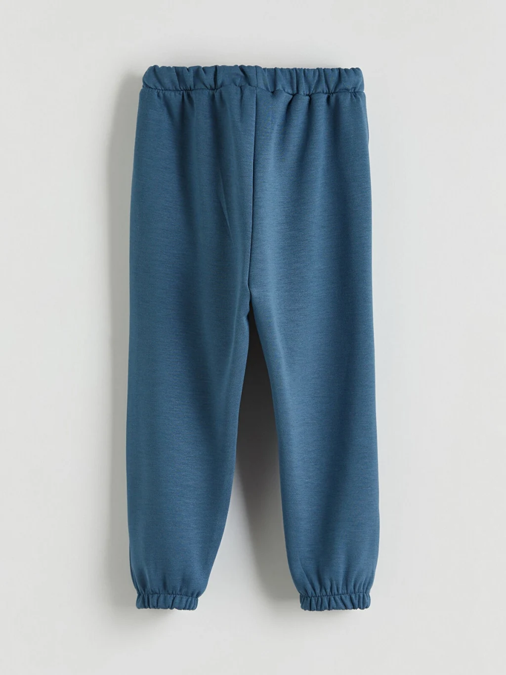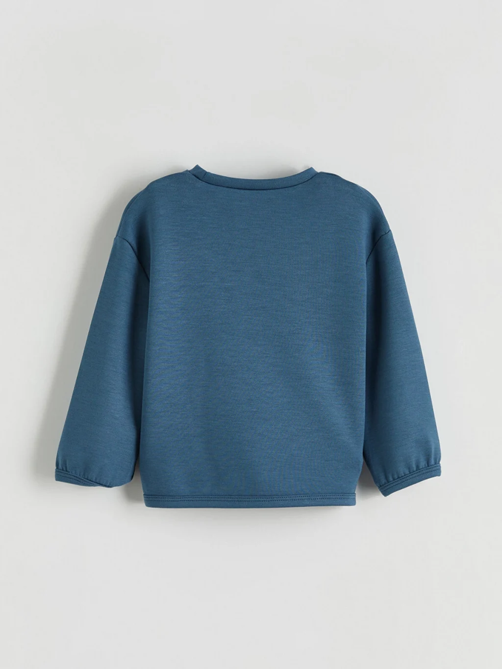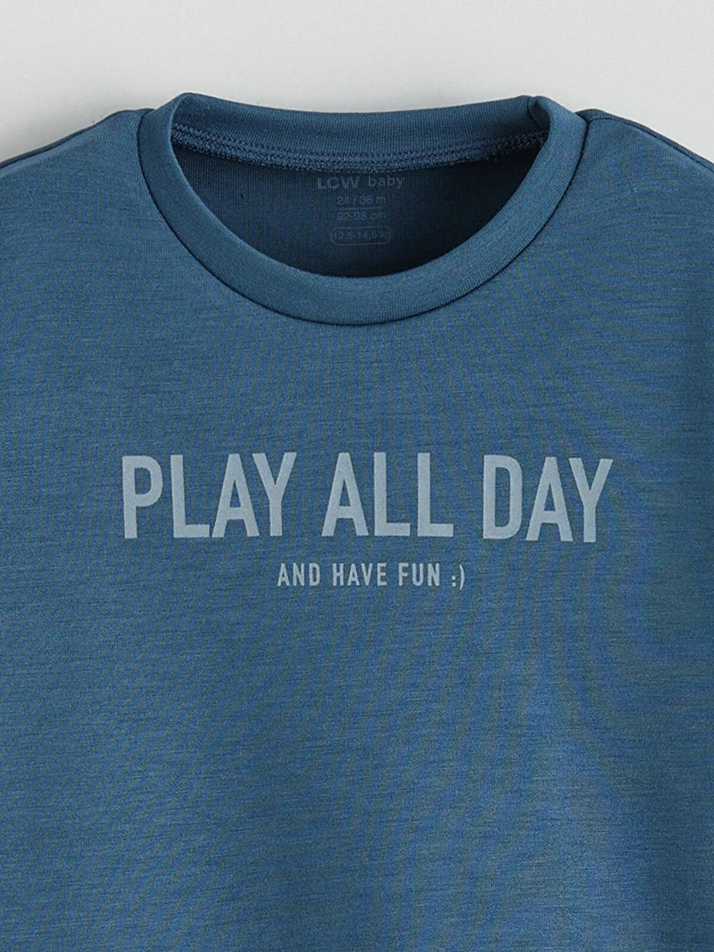Erkek bebek takım, bisiklet yaka, uzun kollu, slogan baskılı sweatshirt ve beli ile paçaları lastikli eşofman altından oluşur.