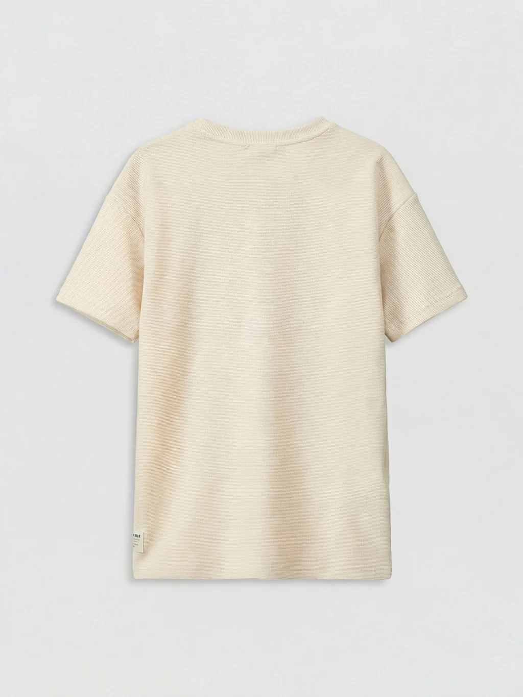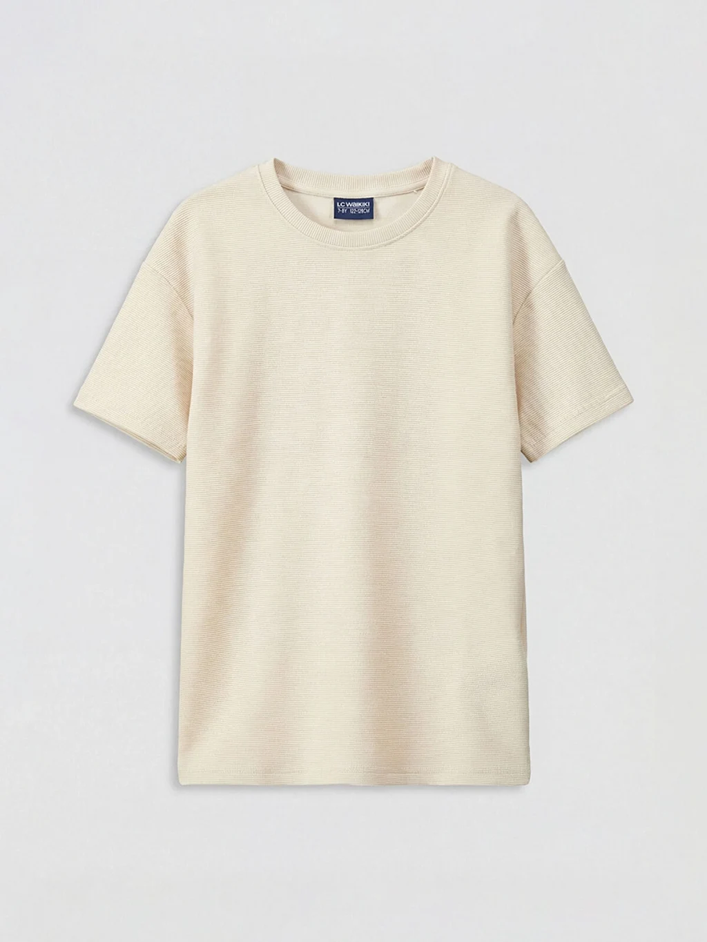 Erkek çocuk için tasarlanan tişört, bisiklet yaka ve kısa kollu modeldedir. Bol kalıp kesimiyle üretilmiştir.