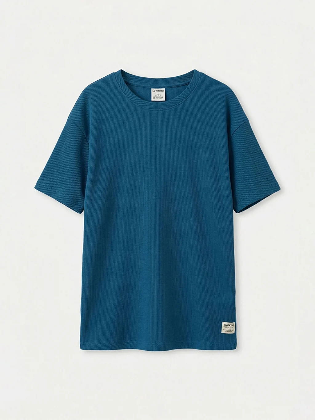 Bisiklet yakalı ve kısa kollu erkek çocuk tişört, bol kalıplı bir tasarıma sahiptir.