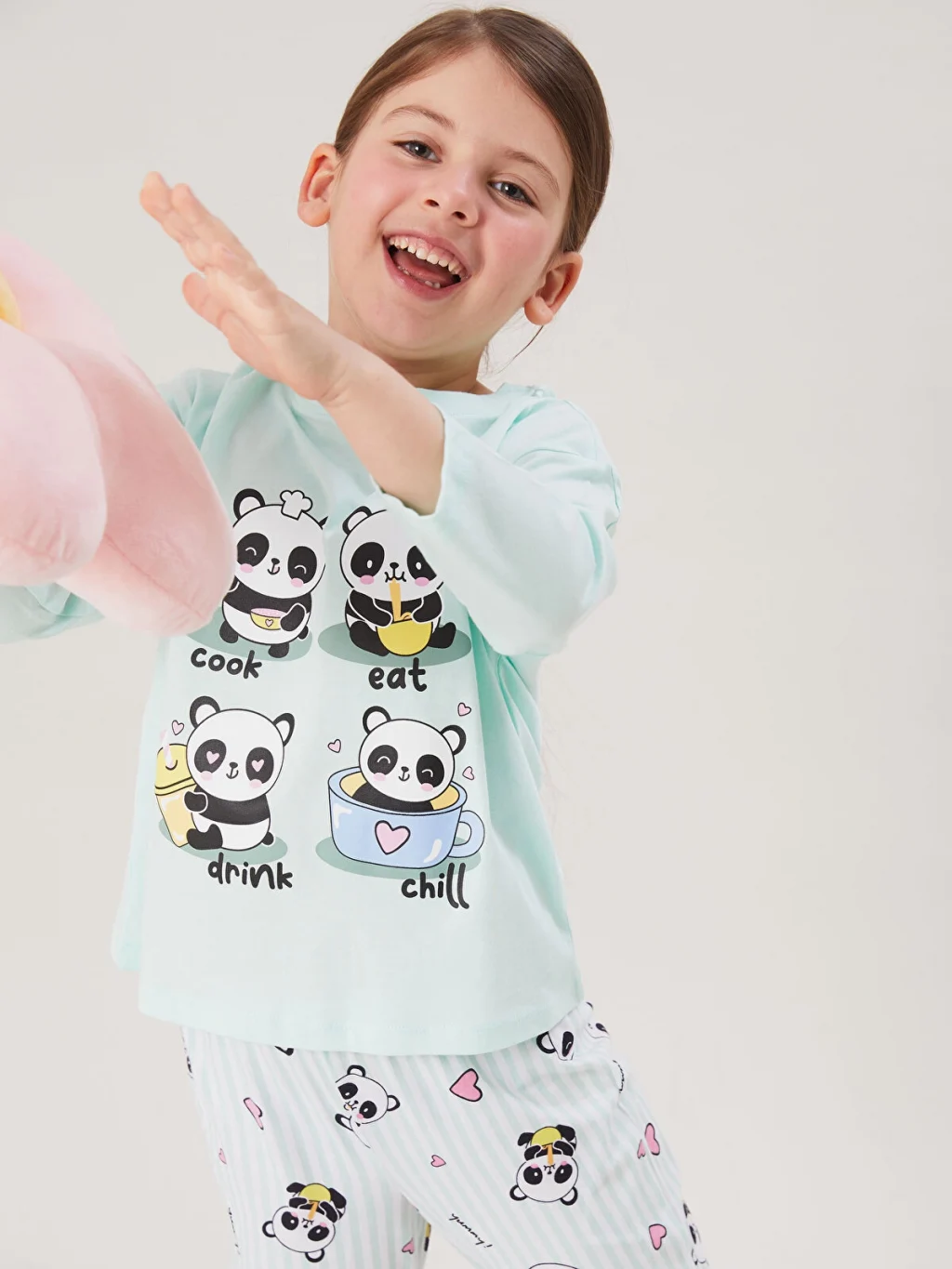 Rahat kalıp pijama üst ve standart kalıp pijama alt olarak 2 parçadan oluşan pijama takımı nefes alabilen penye kumaştan üretilmiştir.