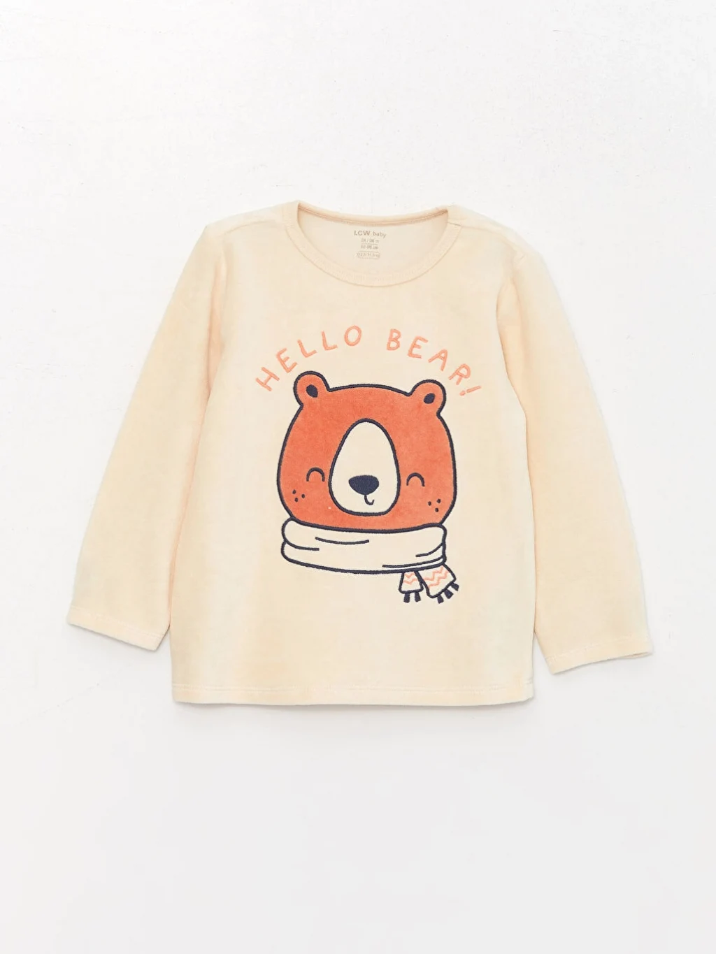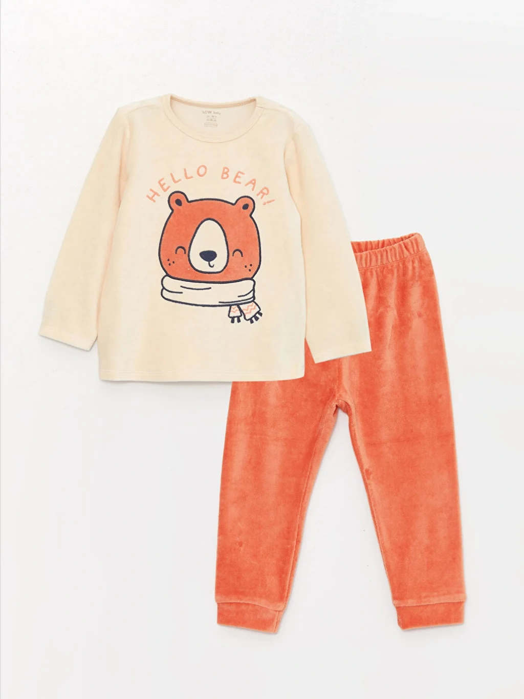 LCW baby Ekru Bisiklet Yaka Uzun Kollu Baskılı Kadife Erkek Bebek Pijama Takımı