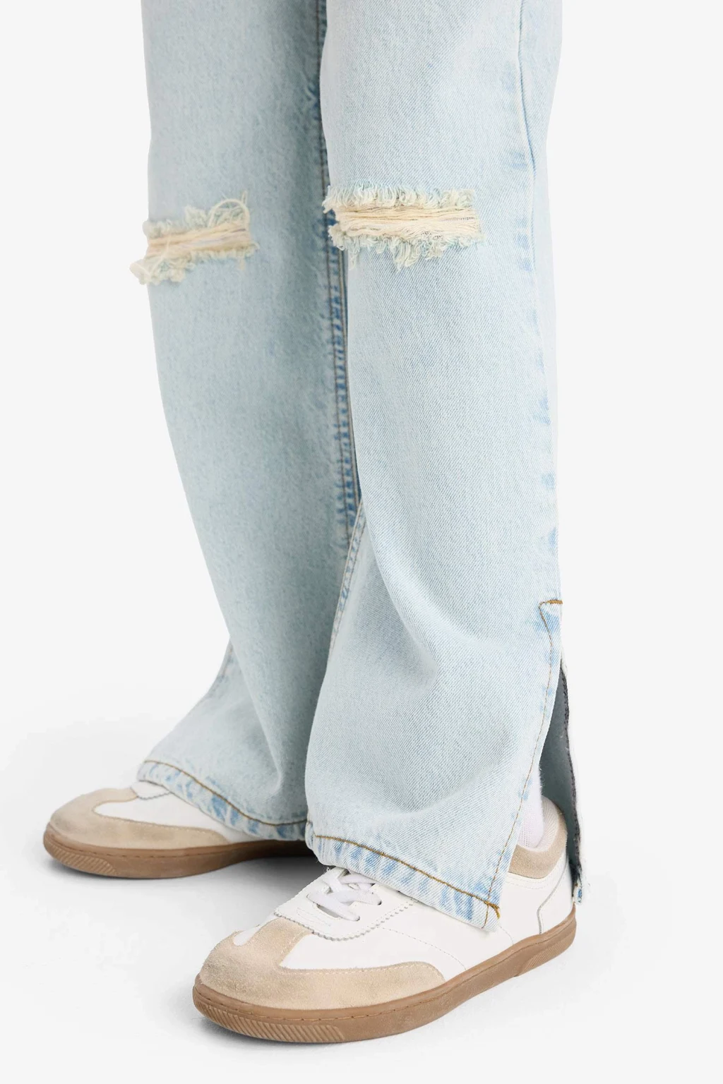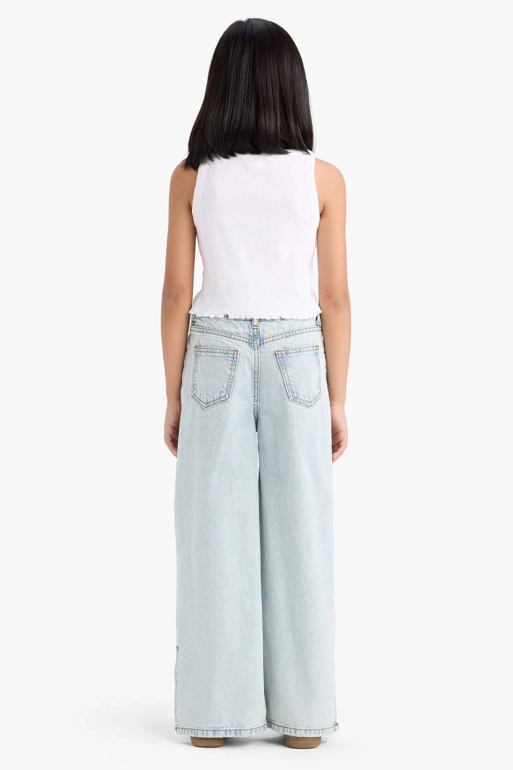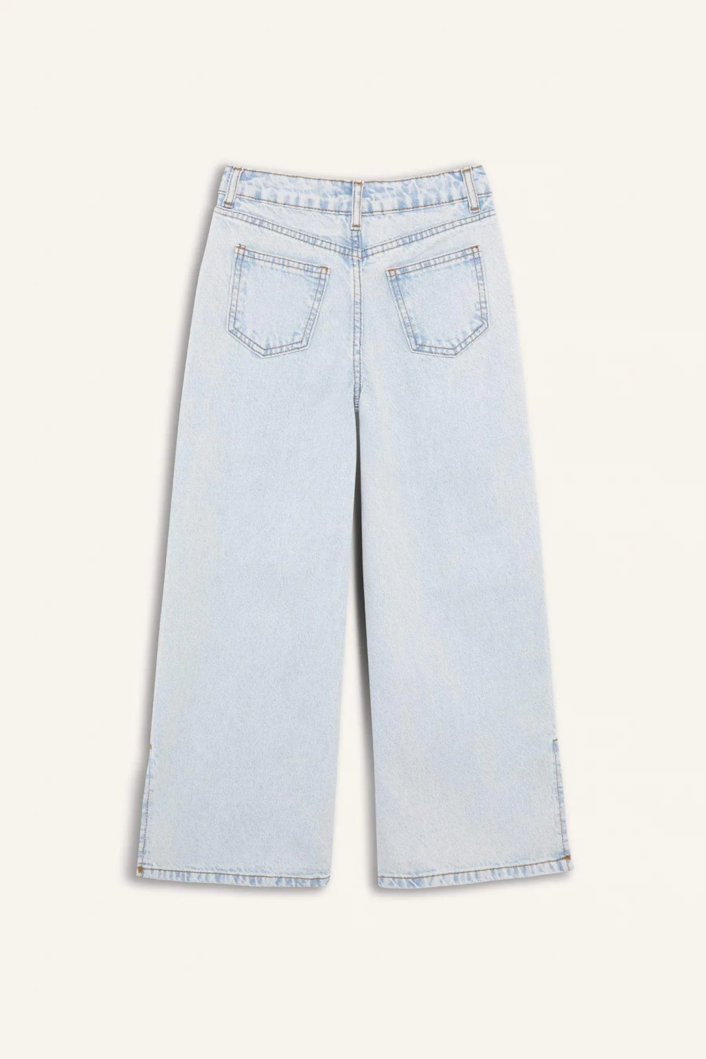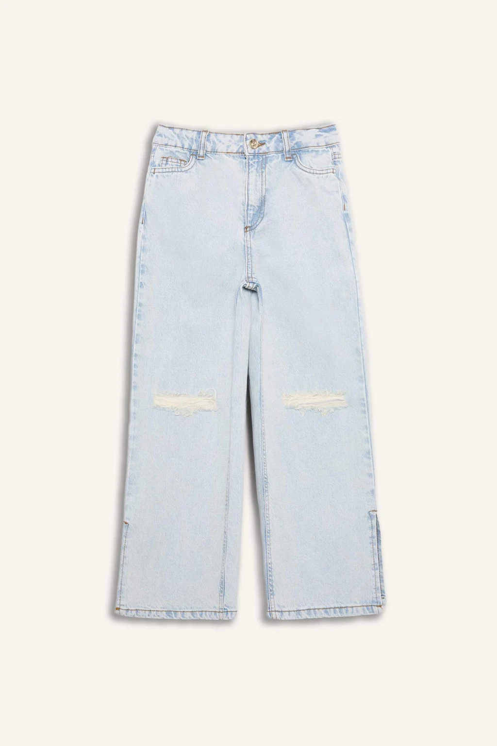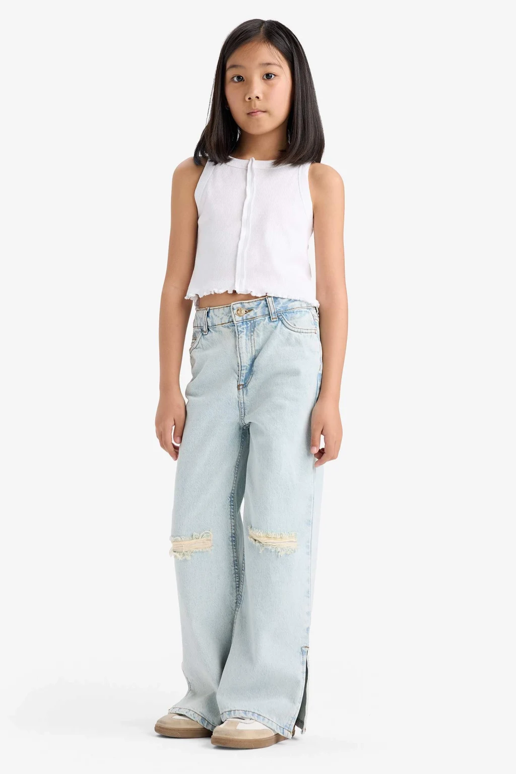 Defacto Z4708 Mavi Kız Çocuk Wide Leg Yırtık Detaylı Geniş Paça Jean Pantolon