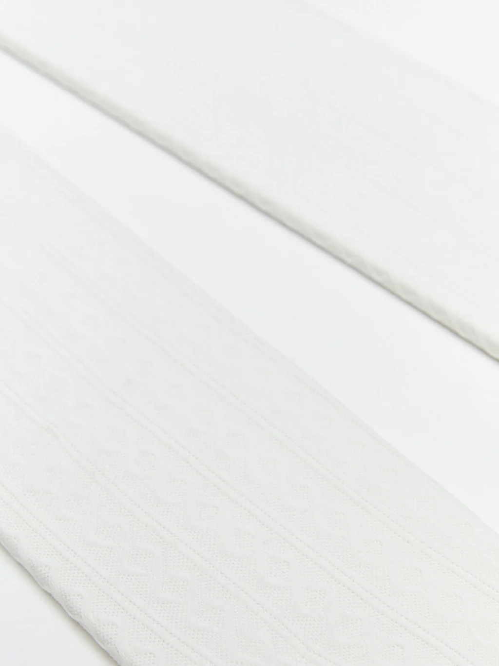 Kendinden desenli kumaştan üretilen kız çocuk külotlu çorap, beli lastikli ve kapalı burunlu bir tasarıma sahiptir.