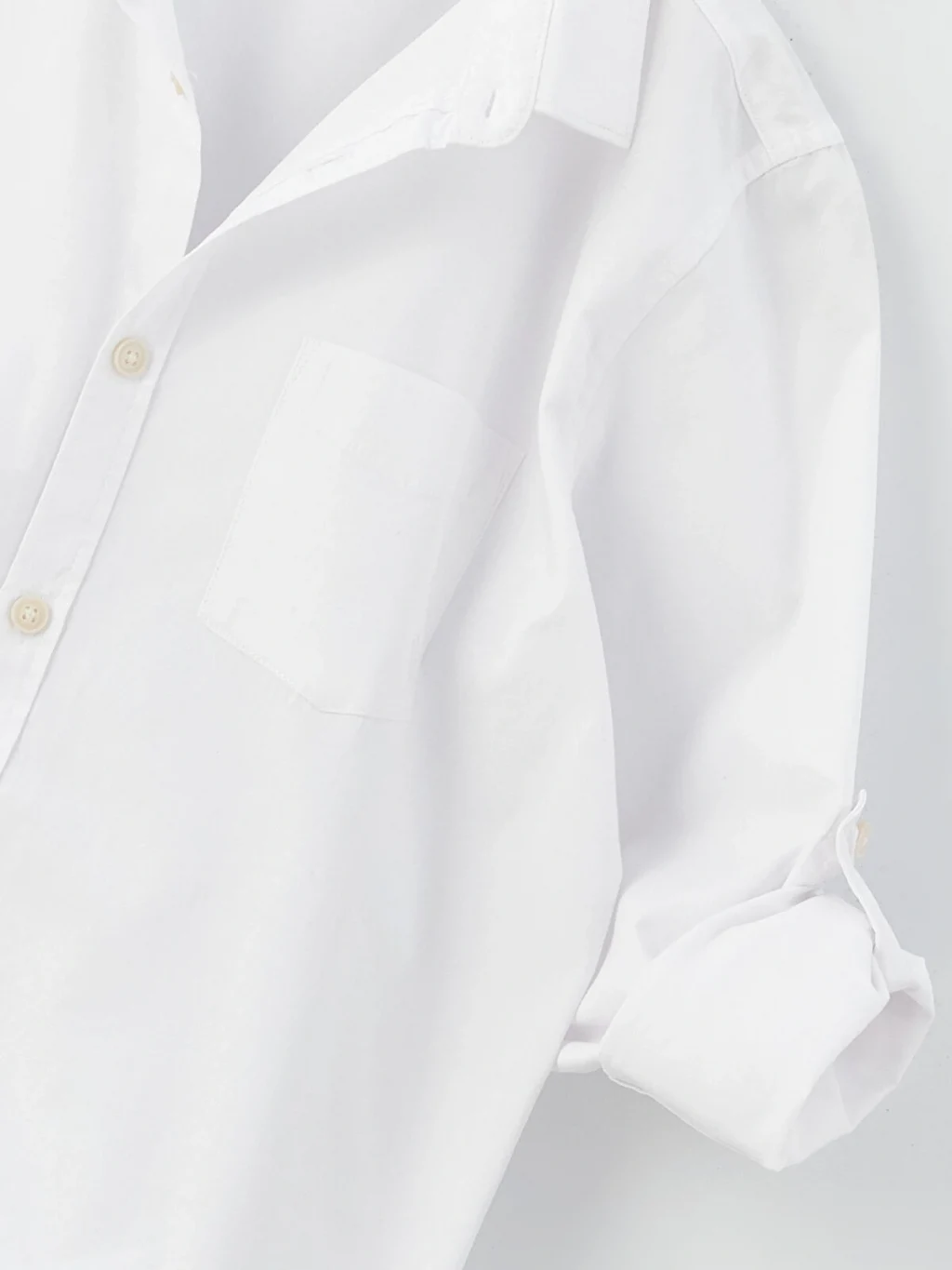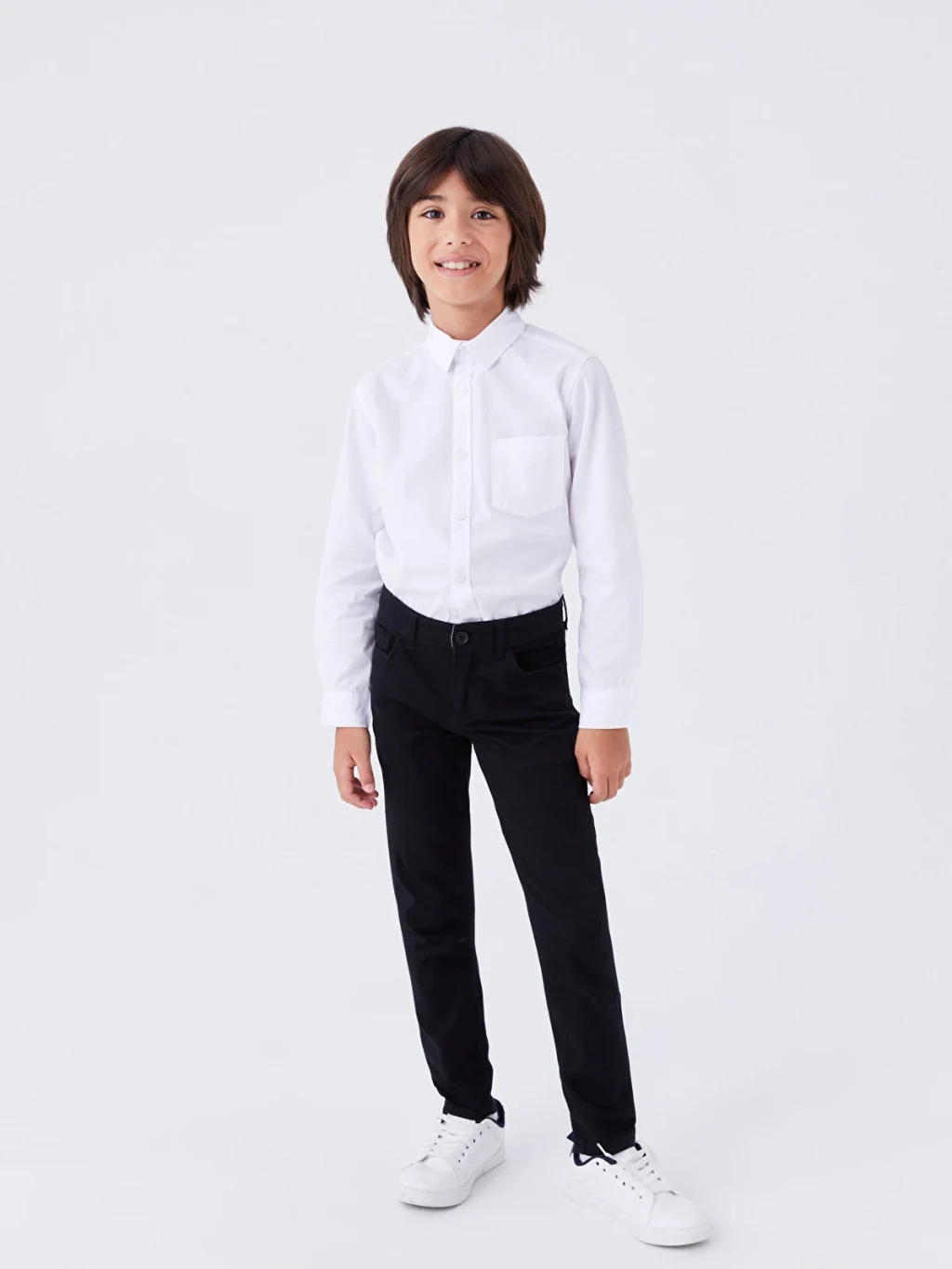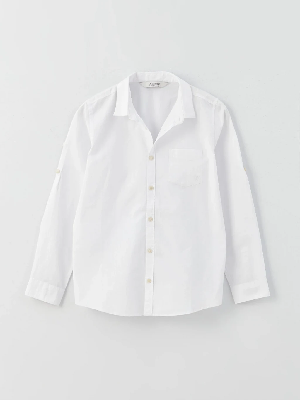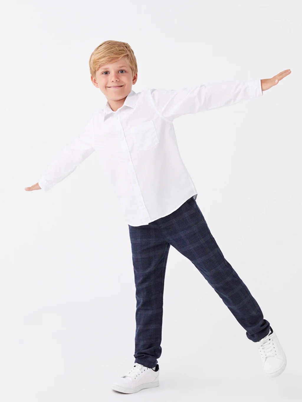 %100 pamuklu poplin kumaştan üretilen erkek çocuk gömlek, gömlek yakalı ve uzun kolludur. Önden düğme kapamalıdır ve tek göğüs cebi bulunur.