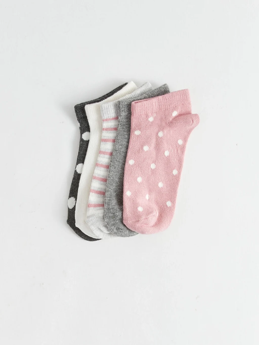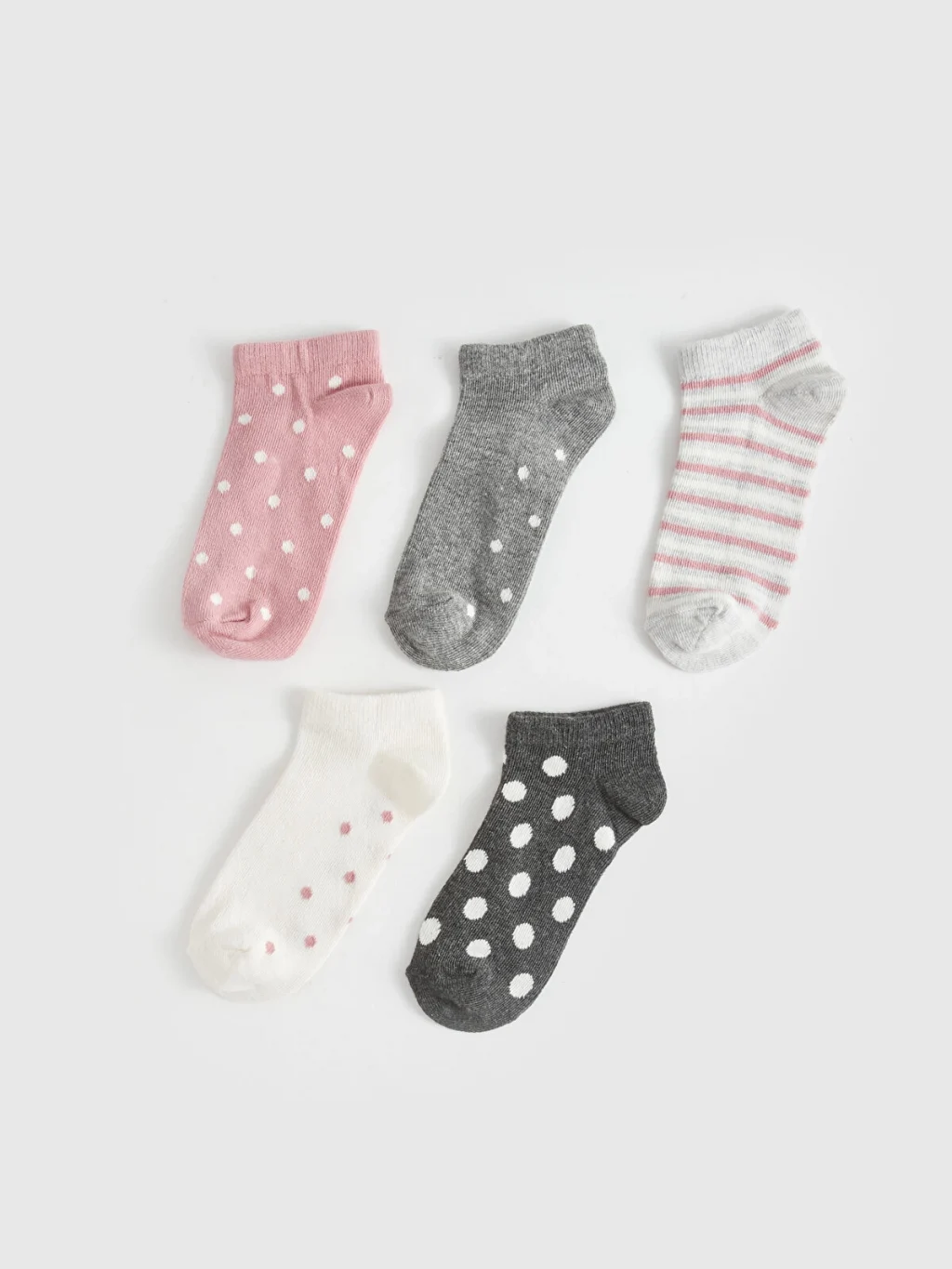 Pamuk karışımlı, esnek kumaştan 5'li kız çocuk patik çorap, şık ve rahat bir seçenek. Çocuğunuzun ayaklarını yumuşaklıkla sarar ve hareket özgürlüğü sağlar. Günlük kullanıma uygun eğlenceli bir görünüm sunar.